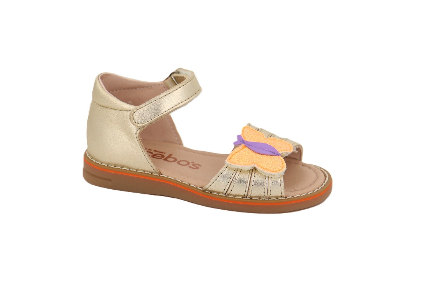 La sandale nu-pieds PAPILLON de chez Acebos illumine les premiers pas avec douceur et fantaisie. Confectionnée en cuir doré, elle apporte une touche lumineuse et délicate aux tenues estivales des petites filles. Son joli papillon coloré sur l'avant ajoute une note poétique et joyeuse, tandis que la bride cheville à scratch assure un maintien sûr et facile à ajuster. Sa semelle souple et confortable accompagne le pied avec légèreté tout au long de la journée. Un modèle à la fois tendre et élégant, parfait pour briller tout l'été.