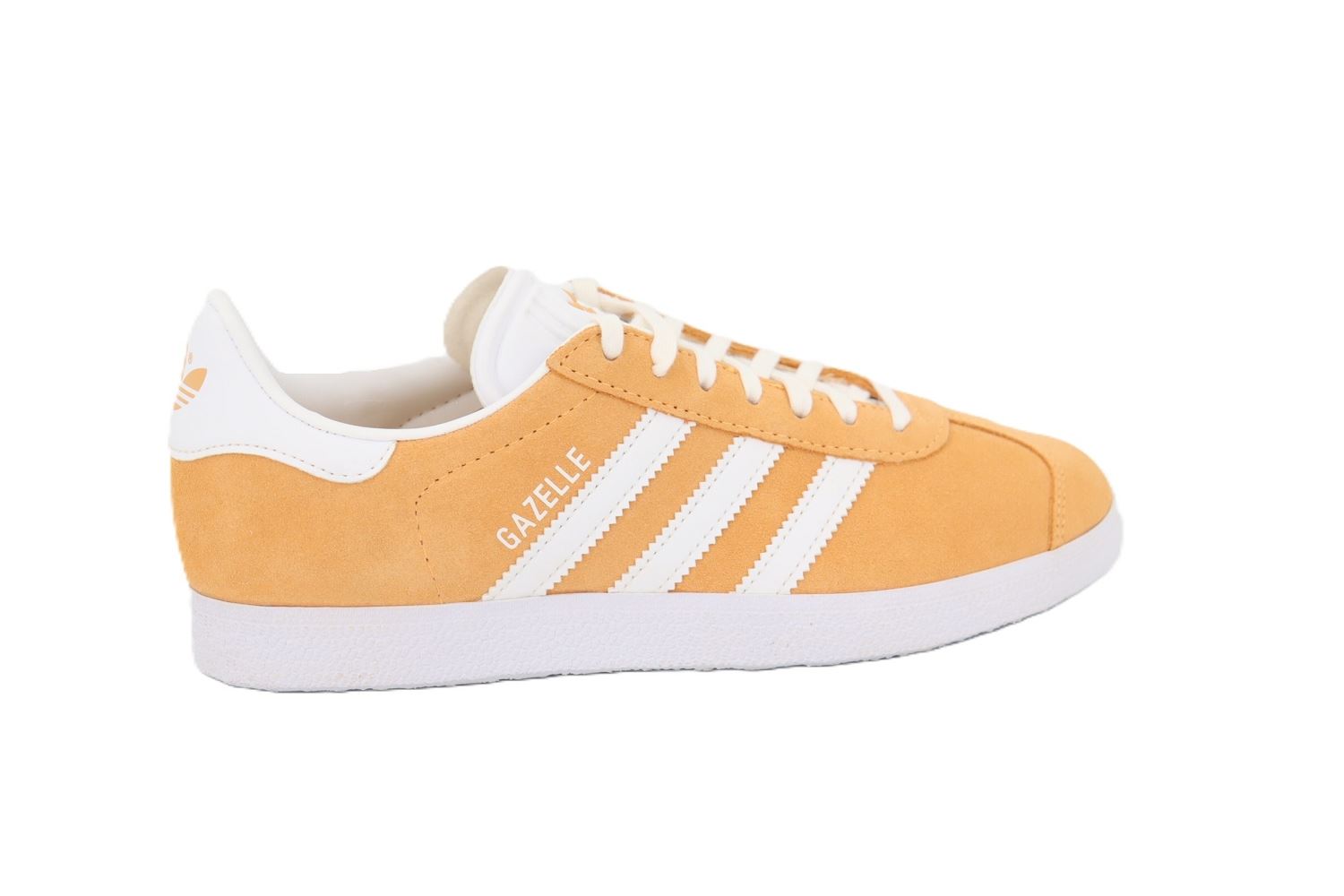 La basket Gazelle femme revient dans une version audacieuse en cuir nubuck orange, contrastée par les trois bandes blanches emblématiques d'Adidas. Inspirée du design original des années 90, cette sneaker allie style rétro et confort moderne grâce à sa semelle en caoutchouc souple et sa doublure textile respirante. Élégante et lumineuse, elle s'impose comme une pièce maîtresse du dressing casual, parfaite pour donner une touche de couleur et d'authenticité à toutes vos tenues.
