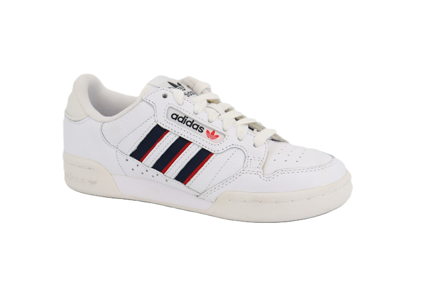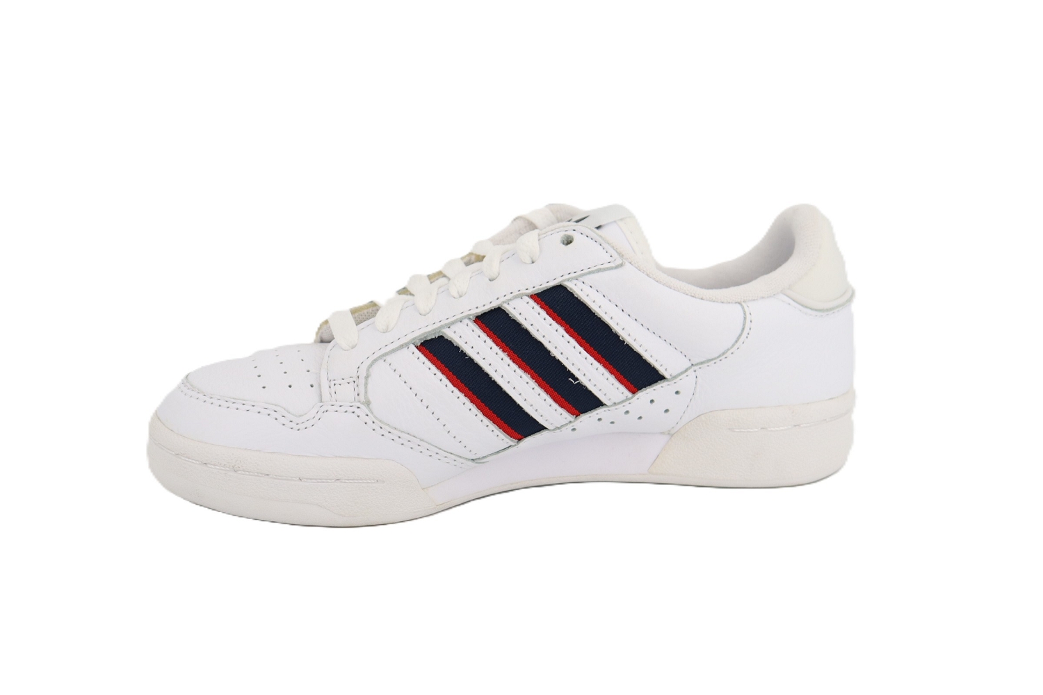 Inspirée des archives des années 80, la Continental 80 de Adidas revisite le style rétro avec une élégance intemporelle. Confectionnée en cuir blanc, elle est soulignée par des bandes bleu marine et rouge qui apportent une touche graphique et authentique. Son design épuré, associé à un confort étudié pour un usage quotidien, en fait une basket mixte idéale pour compléter des looks casual ou urbains avec caractère.