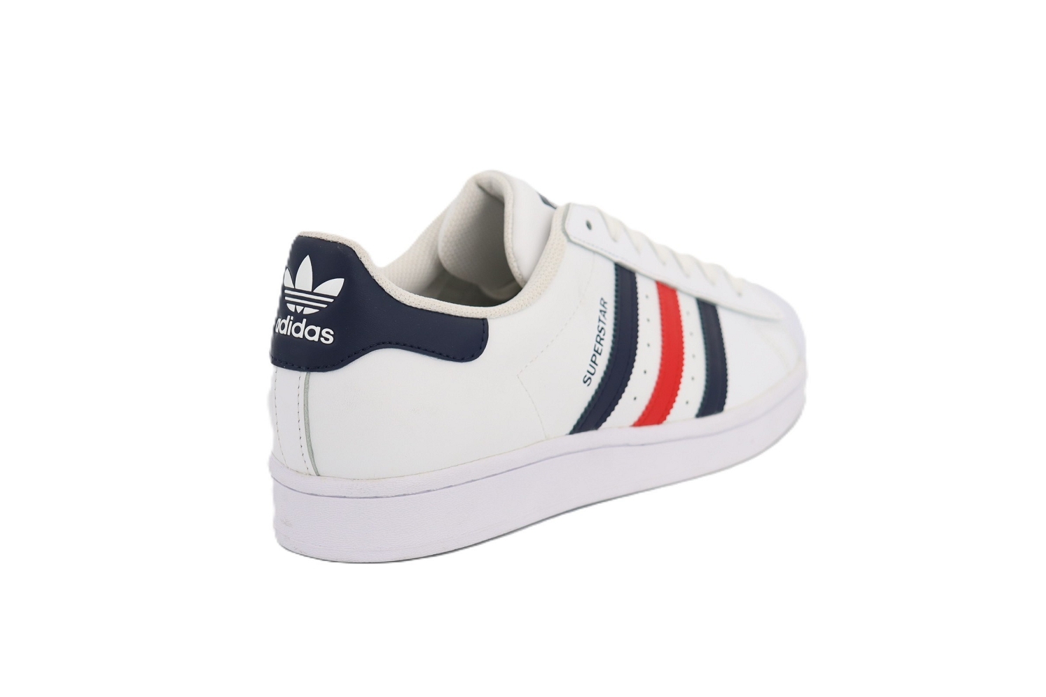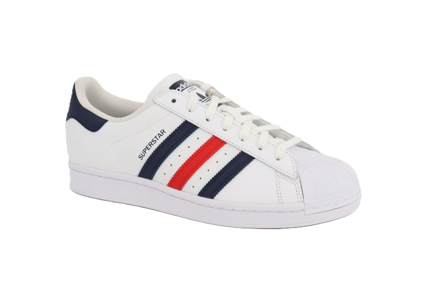 Icône incontournable du vestiaire urbain, la Superstar de Adidas se décline ici en cuir blanc, rehaussé de bandes bleu marine et rouge pour une touche graphique et moderne. Reconnaissable à son bout coquille emblématique, cette basket homme allie style intemporel et confort au quotidien. Facile à associer, elle accompagne aussi bien les looks casual que streetwear avec une élégance décontractée.
