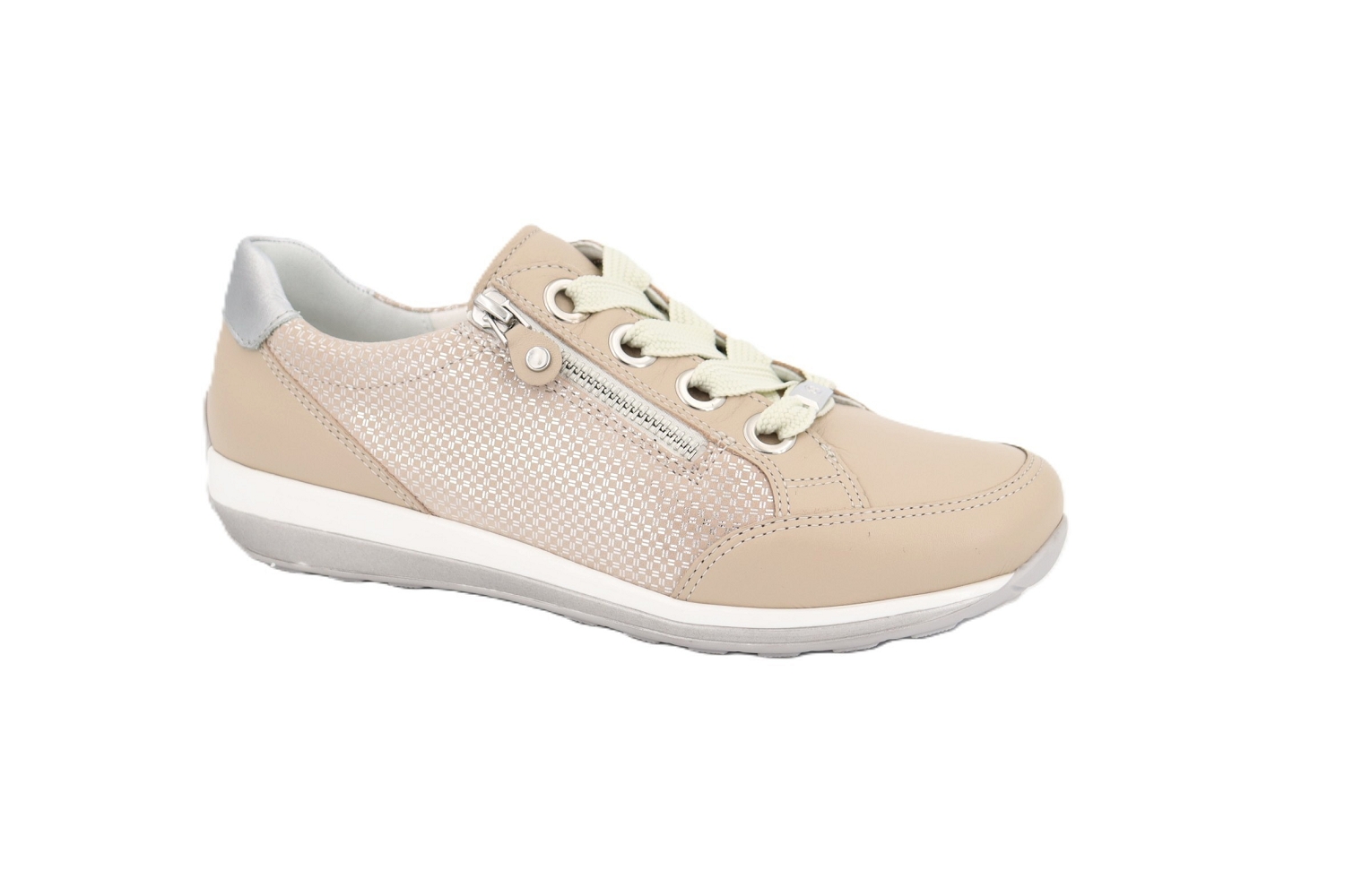 Sneaker au style épuré, le modèle OSAKA de Ara séduit par son cuir beige délicat associé à des empiècements subtilement texturés. Son design moderne et lumineux en fait une pièce facile à intégrer dans un vestiaire du quotidien. Pensée pour le confort, elle offre un chaussant agréable avec une semelle souple et légère, idéale pour accompagner vos journées actives. Le zip latéral apporte une touche pratique tout en facilitant l'enfilage. Polyvalente et élégante, elle complète parfaitement une tenue casual avec douceur et modernité.