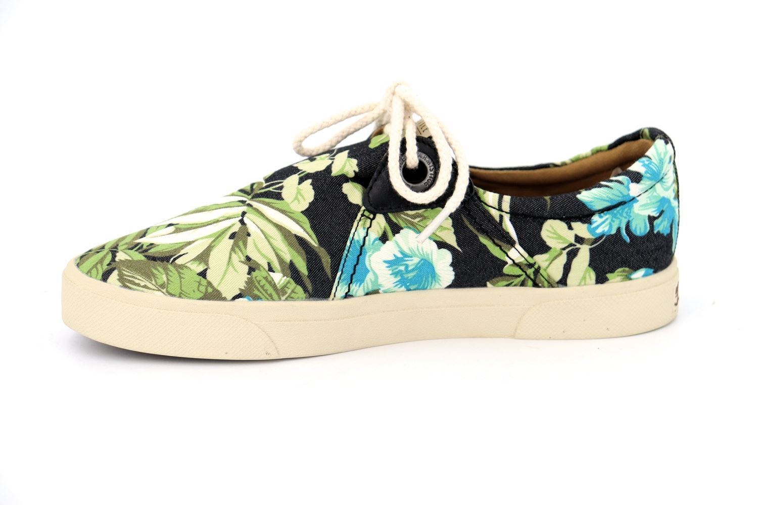 La Hope One Cayenne est déclinée dans un délicat tissu de couleur noir à motif tropical. Comme le modèle original, elle est dotée d'un lacet en corde. Sa semelle en caoutchouc est autant souple et confortable que robuste.