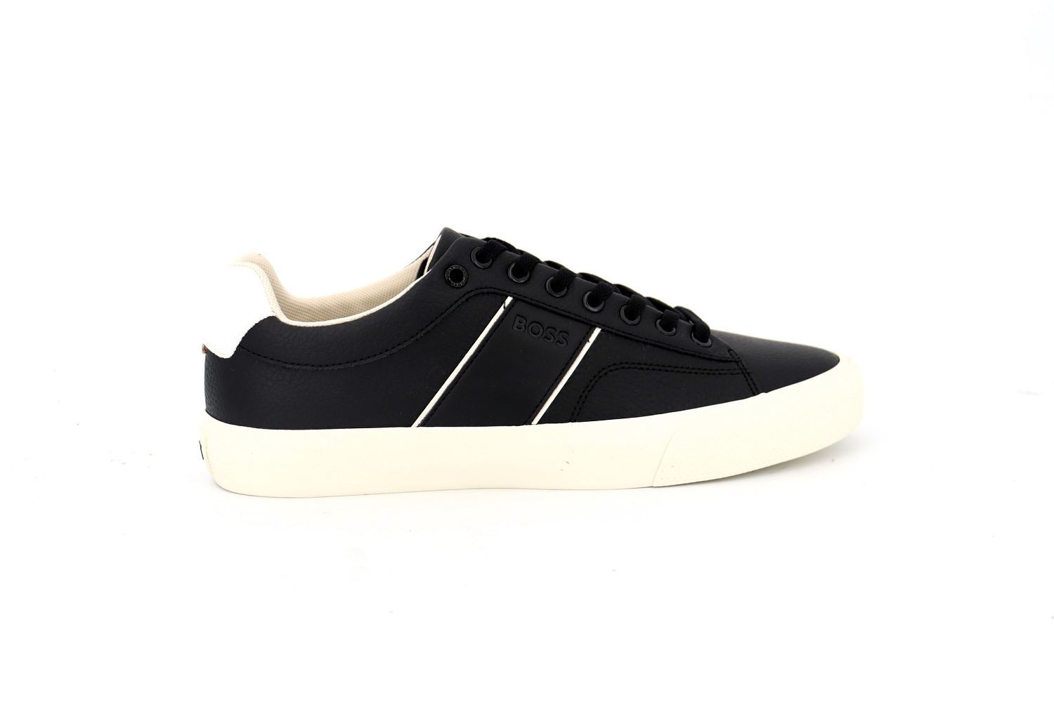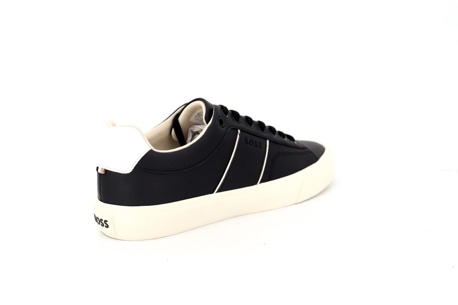 Des baskets BOSS élégantes à semelle cupsole confectionnées en cuir lisse et ornées de rayures emblématiques et d’un logo. La marque Hugo BOSS recherche en permanence des méthodes de fabrication et de finition plus responsables pour leurs modèles Aiden.