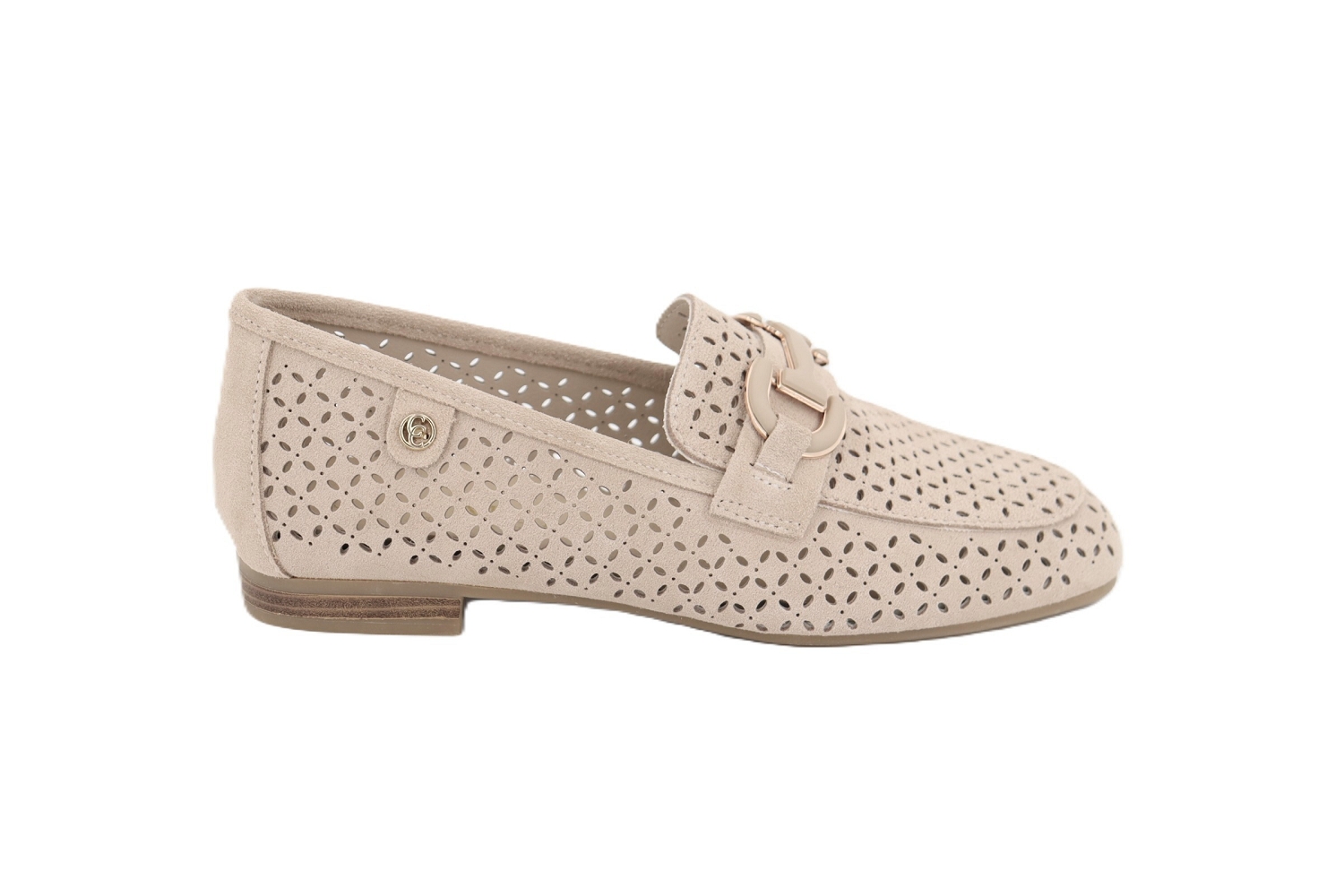 Le mocassin Camo de Carmela séduit par son élégance naturelle et son confort au quotidien. Confectionné en cuir beige, il se distingue par ses perforations décoratives qui apportent légèreté et respirabilité au modèle. Son empeigne ornée d'un détail métallique ajoute une touche raffinée et moderne. Monté sur une semelle plate légère et souple, ce mocassin assure confort et stabilité tout au long de la journée. Un modèle chic et facile à porter, idéal pour accompagner vos tenues avec une allure élégante et décontractée.