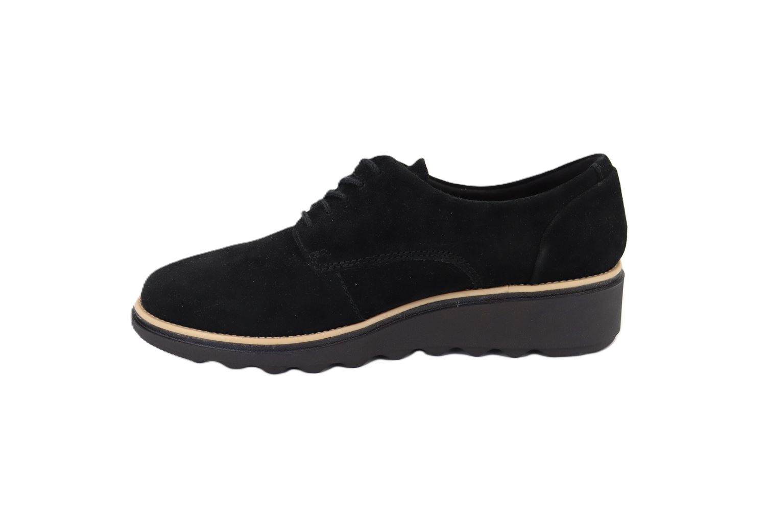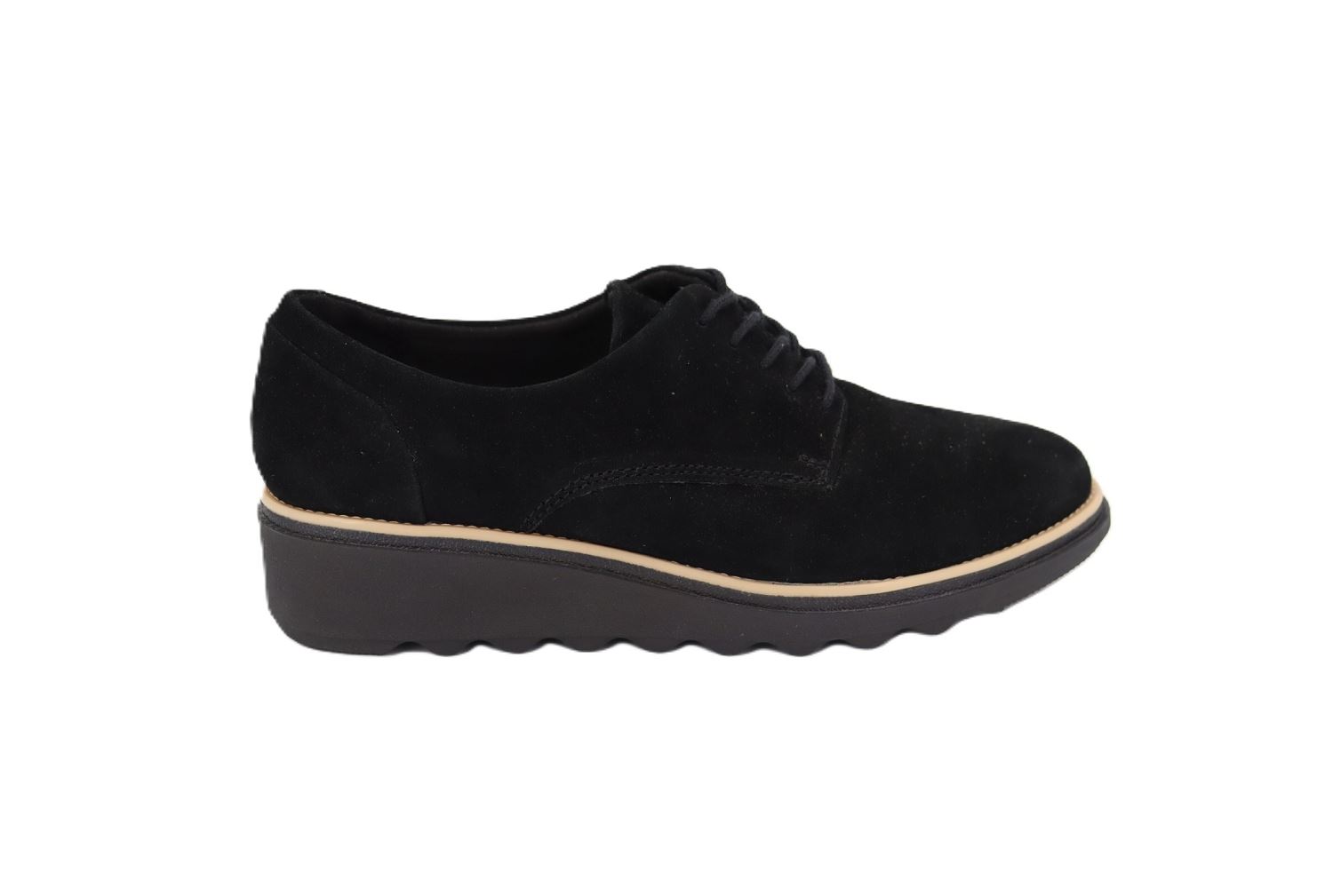 La Clarks Sharon Noel se présente ici dans un superbe cuir velours noir, offrant une allure féminine et moderne idéale pour un usage quotidien. Sa semelle compensée légère et ondulée assure un confort optimal tout au long de la journée, tandis que la forme derby à lacets apporte maintien et élégance. Le contraste subtil entre la tige en daim et la semelle texturée ajoute une touche contemporaine. Parfaite avec un pantalon habillé, une jupe ou un jean, elle combine style, stabilité et douceur. Une chaussure polyvalente, confortable et tendance, conçue pour sublimer toutes vos tenues avec simplicité et raffinement.