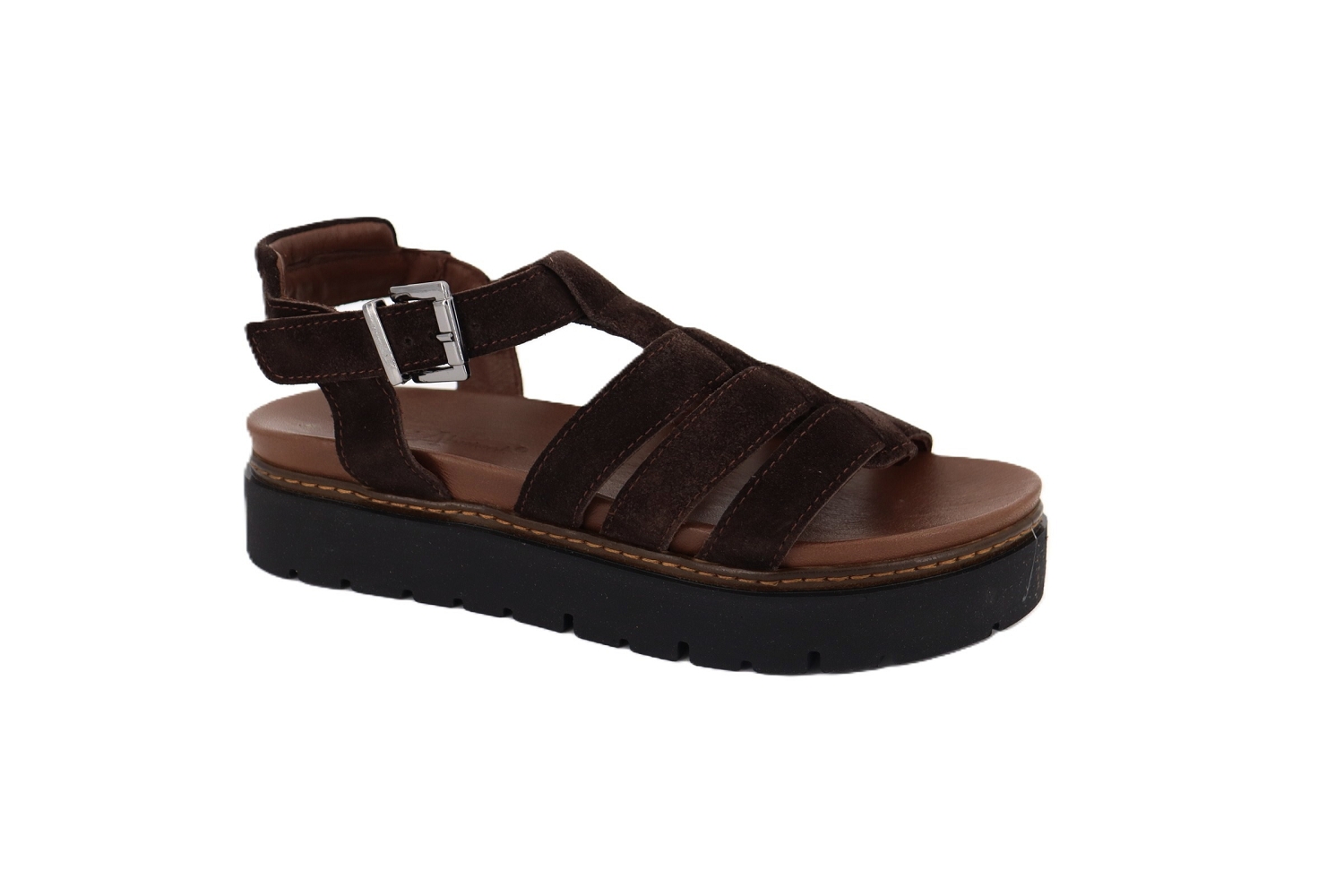 La sandale nu-pieds Malpas de Coco Abricot combine style moderne et confort au quotidien. Réalisée en cuir velours marron, elle séduit par ses brides élégantes qui maintiennent le pied avec souplesse et sa bride arrière réglable pour un ajustement parfait. Sa semelle plateforme crantée apporte une touche contemporaine tout en offrant une bonne stabilité et un confort agréable à la marche. Une sandale au look urbain et féminin, idéale pour accompagner vos tenues estivales avec caractère.