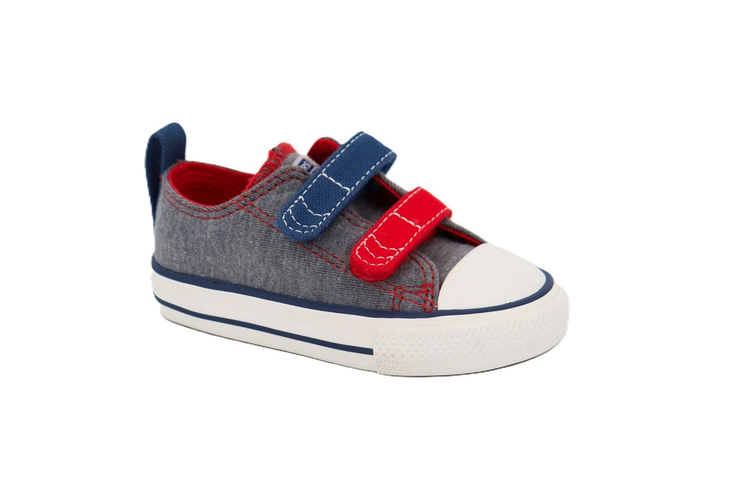 Craquez pour la basket garçon CT OX de Converse, un modèle à scratch aussi pratique que stylé. Confectionnée en textile gris avec des touches de rouge et de bleu, elle offre un look dynamique et coloré. Ses deux brides velcro permettent un enfilage rapide et un maintien sûr, idéal pour accompagner votre enfant au quotidien. Montée sur la semelle emblématique Converse, elle allie confort, légèreté et style intemporel.