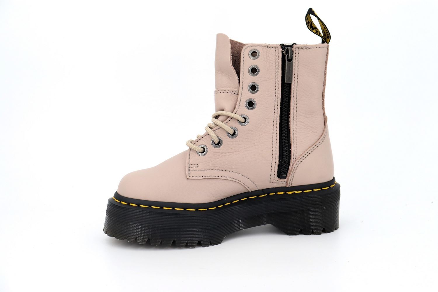 Les Jadon ont fait une entrée fracassante dans le monde des Docs il y a quelques années déjà, et pour cause : ces boots pleines de caractère sont montées sur d'imposantes semelles Quad de 4.7 cm. Pour la nouvelle saison, nous vous en présentons une nouvelle déclinaison, les Jadon 3. Ces bottes à 10 oeillets sont une variation de notre modèle 1490 et sont dotées des finitions jaunes signature de Dr. Martens ainsi que d'une épaisse semelle plateforme.