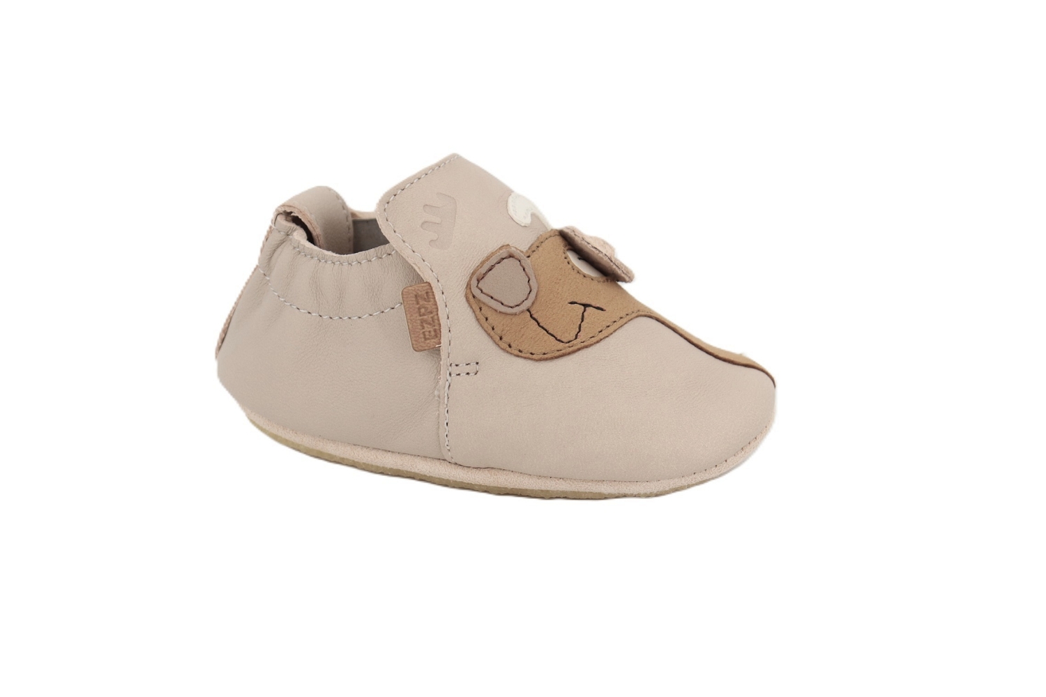 Le chausson pantoufle CHIEN séduit par son design craquant et sa douceur incomparable, parfait pour les premiers pas de bébé. Confectionné en cuir souple beige, il respecte la forme naturelle du pied tout en offrant une grande liberté de mouvement. Sa semelle fine et flexible assure un bon contact avec le sol, tandis que la fermeture pratique permet un enfilage facile et un maintien optimal. Un indispensable à la fois confortable, ludique et plein de tendresse.