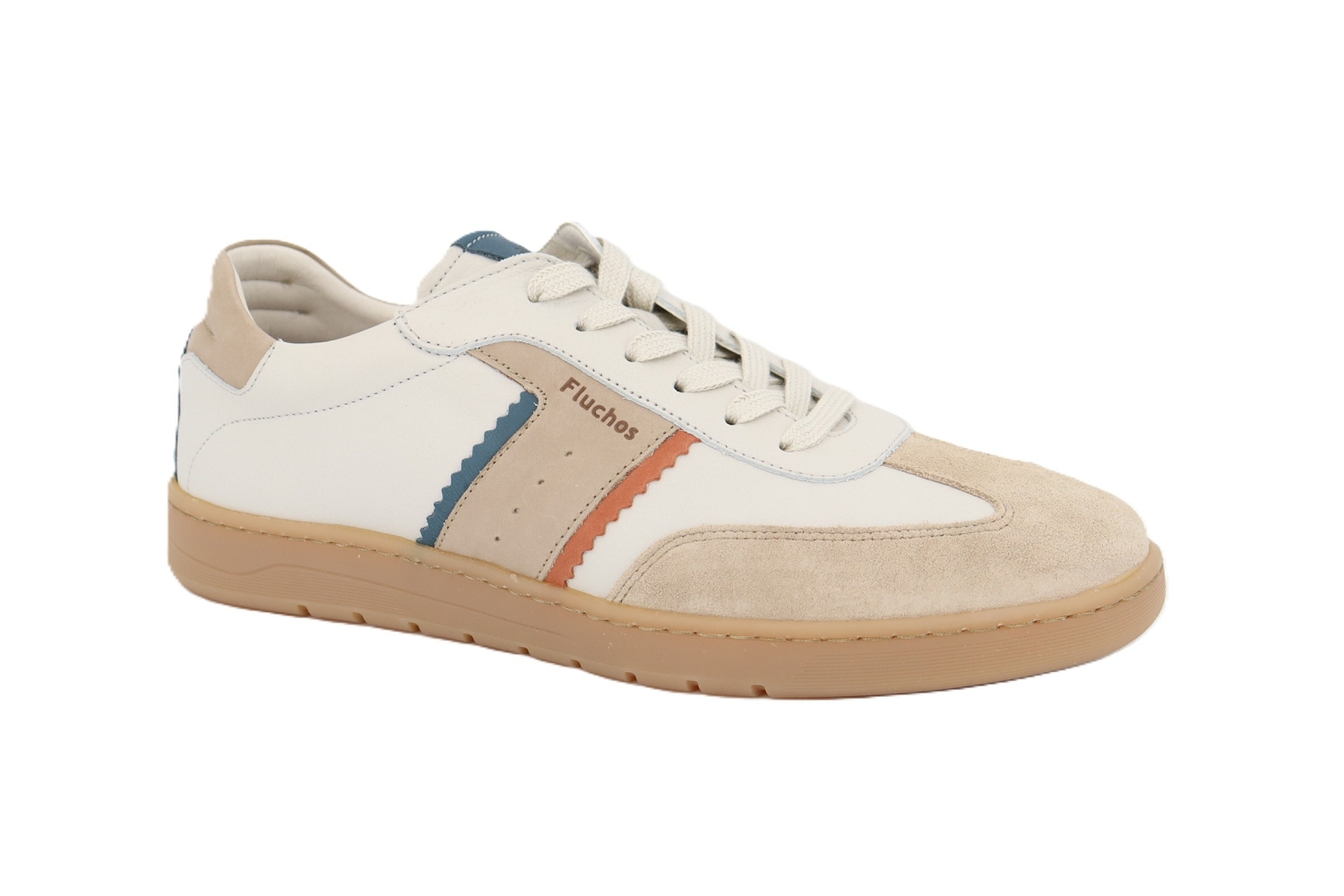Élégante et confortable, la basket Leonor séduit par son cuir beige subtilement associé à des empiècements contrastés pour un style à la fois moderne et facile à porter. Sa forme confortable et sa semelle souple couleur caramel assurent un excellent amorti et un bien-être durable tout au long de la journée. Polyvalente, elle s'intègre aussi bien à un look casual qu'à une tenue plus soignée. Fidèle à l'ADN de Fluchos, la Leonor allie savoir-faire, confort et style au quotidien.