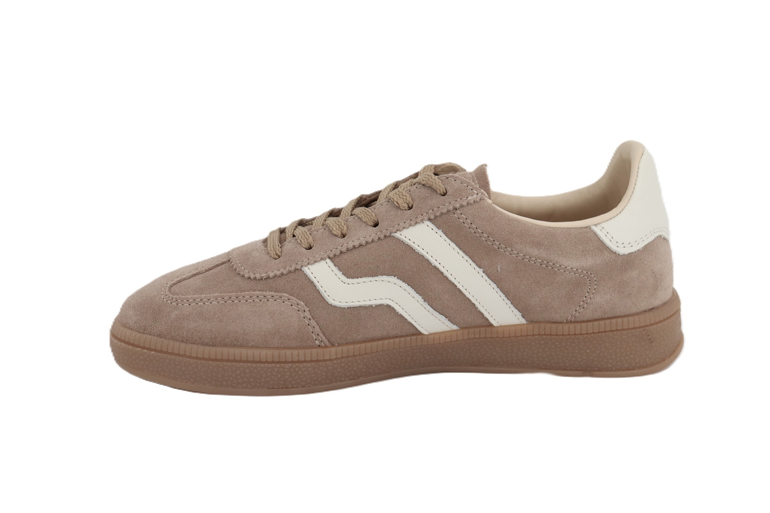 Cuzima s'impose comme une basket d'inspiration rétro, pensée pour se porter en toute saison. Sa tige en daim de qualité supérieure est sublimée par des détails contrastants au talon et sur le côté, apportant caractère et modernité. La fine semelle extérieure en caoutchouc, associée à une doublure en coton éponge, renforce son esprit vintage tout en assurant un confort agréable au quotidien. Une sneaker au style authentique, idéale pour compléter des looks casual et urbains.