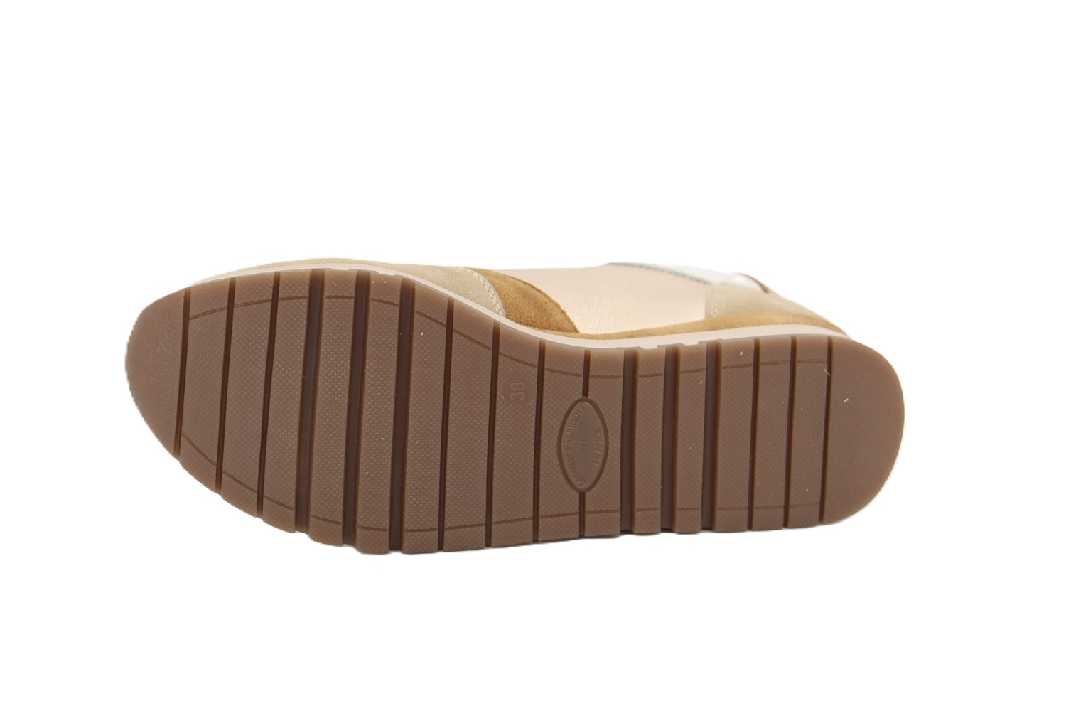 La basket Zolding incarne un parfait équilibre entre élégance urbaine et esprit tendance. Réalisée en cuir beige et cuir doré, elle est subtilement rehaussée d'un empiècement à imprimé léopard au talon, apportant une touche mode assumée. Son jeu de matières et de teintes lumineuses modernise la silhouette, tandis que la semelle épaisse crantée assure stabilité, amorti et confort au quotidien. Facile à associer, ce modèle accompagne aussi bien des looks décontractés que plus sophistiqués. Une basket féminine et actuelle signée Geo Reino.