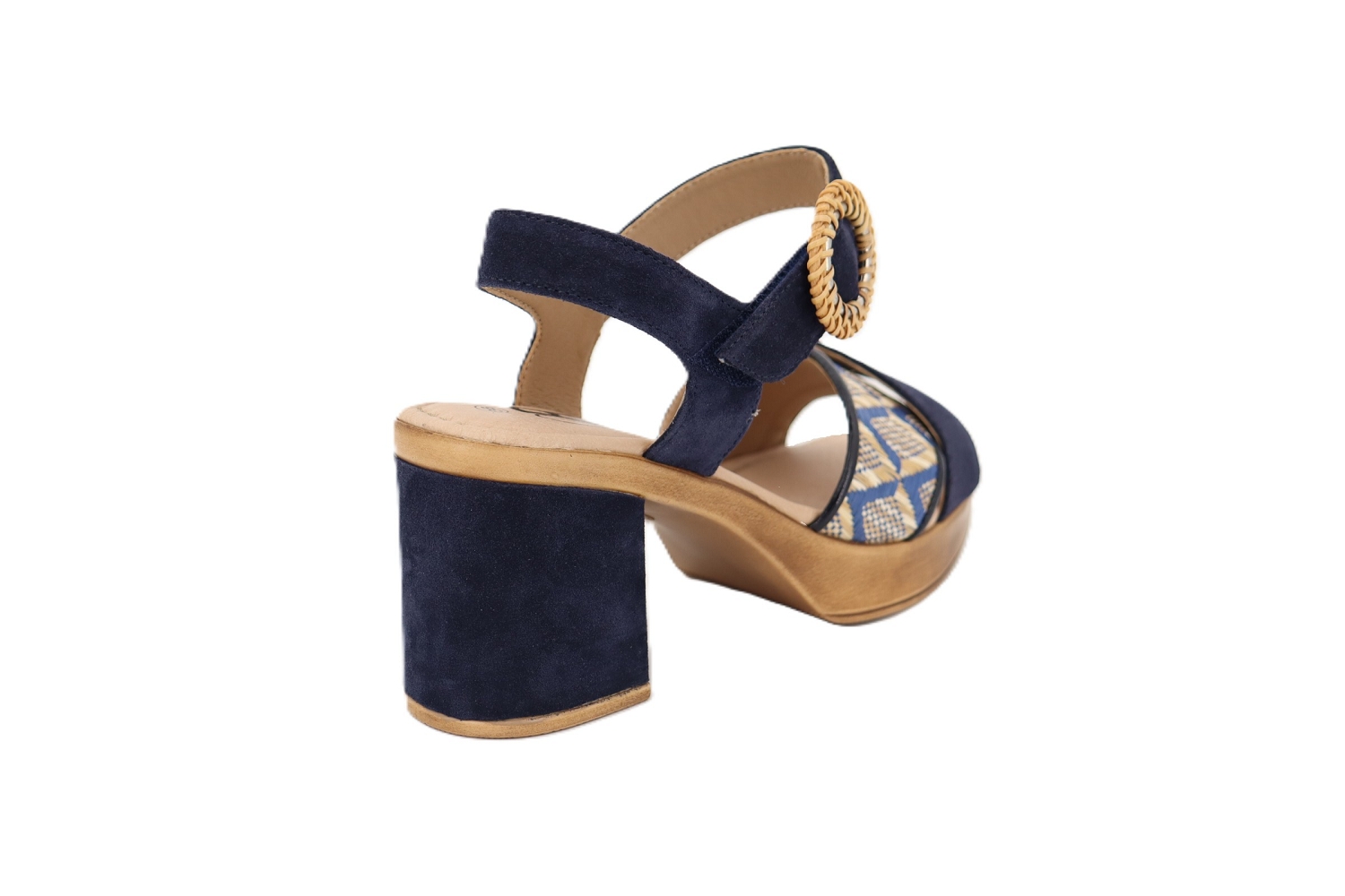 La sandale Tacil conjugue élégance estivale et confort avec un design raffiné aux accents naturels. Réalisée en cuir velours bleu, elle est sublimée par un empeigne en raffia tressé qui apporte une touche artisanale et lumineuse. Son talon bloc stable associé à une semelle légèrement compensée assure un excellent maintien et un confort optimal tout au long de la journée. La bride ajustable à la cheville, ornée d'une boucle effet rotin, complète ce modèle au style chic et décontracté, idéal aussi bien pour le quotidien que pour les occasions estivales. Une sandale féminine et polyvalente signée Geo Reino.