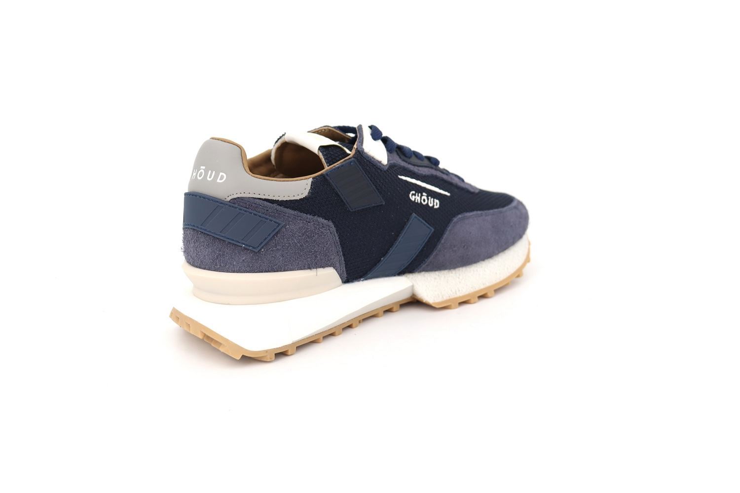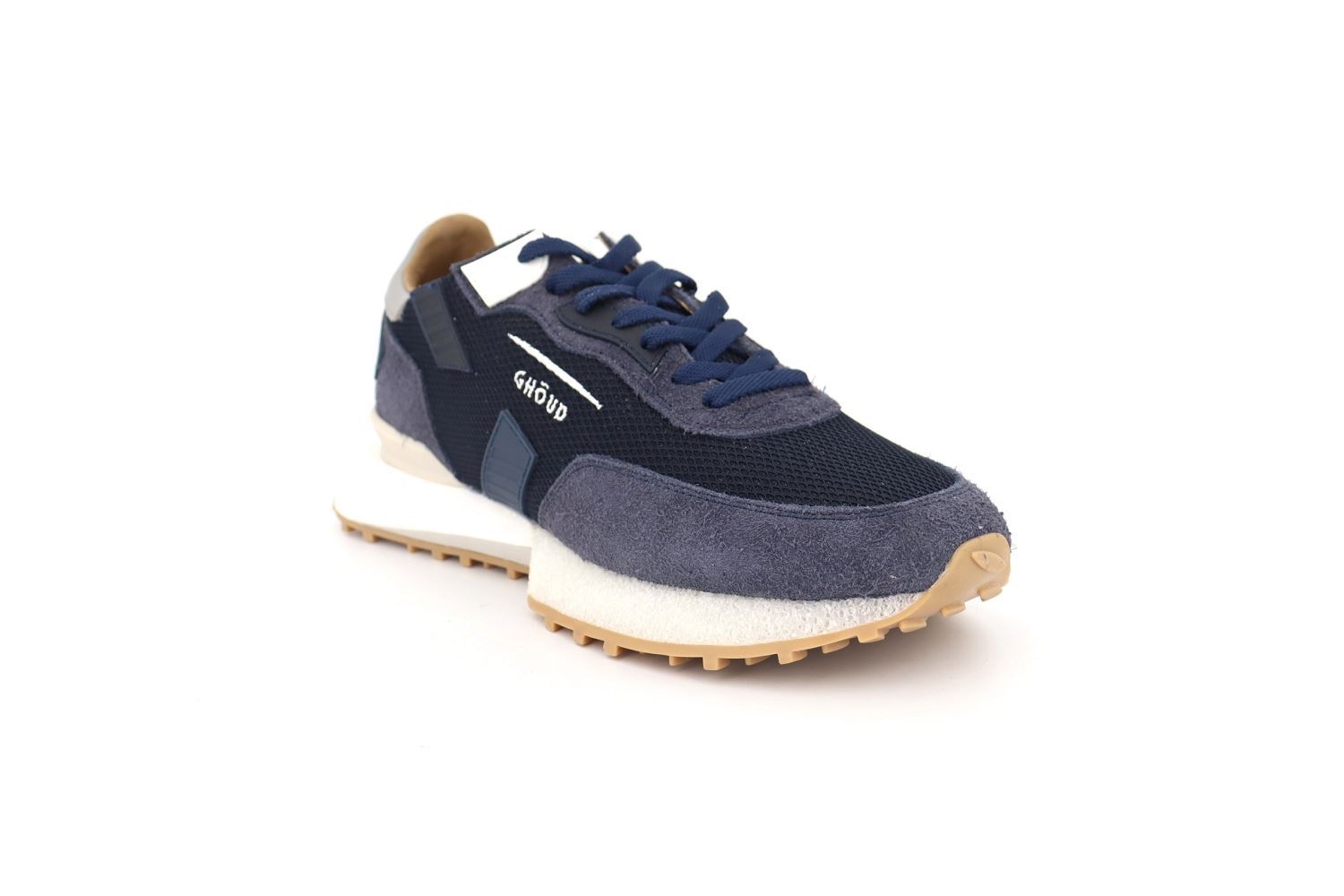 Chaussure contemporaine, le modèle Rush Groove de chez Ghoud présente un design minimal caractérisé par des lignes géométriques et décisives. Tige en mesh et en daim. Logo iconique brodé sur le côté. Parfait pour la saison !