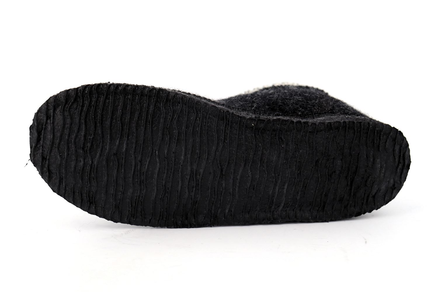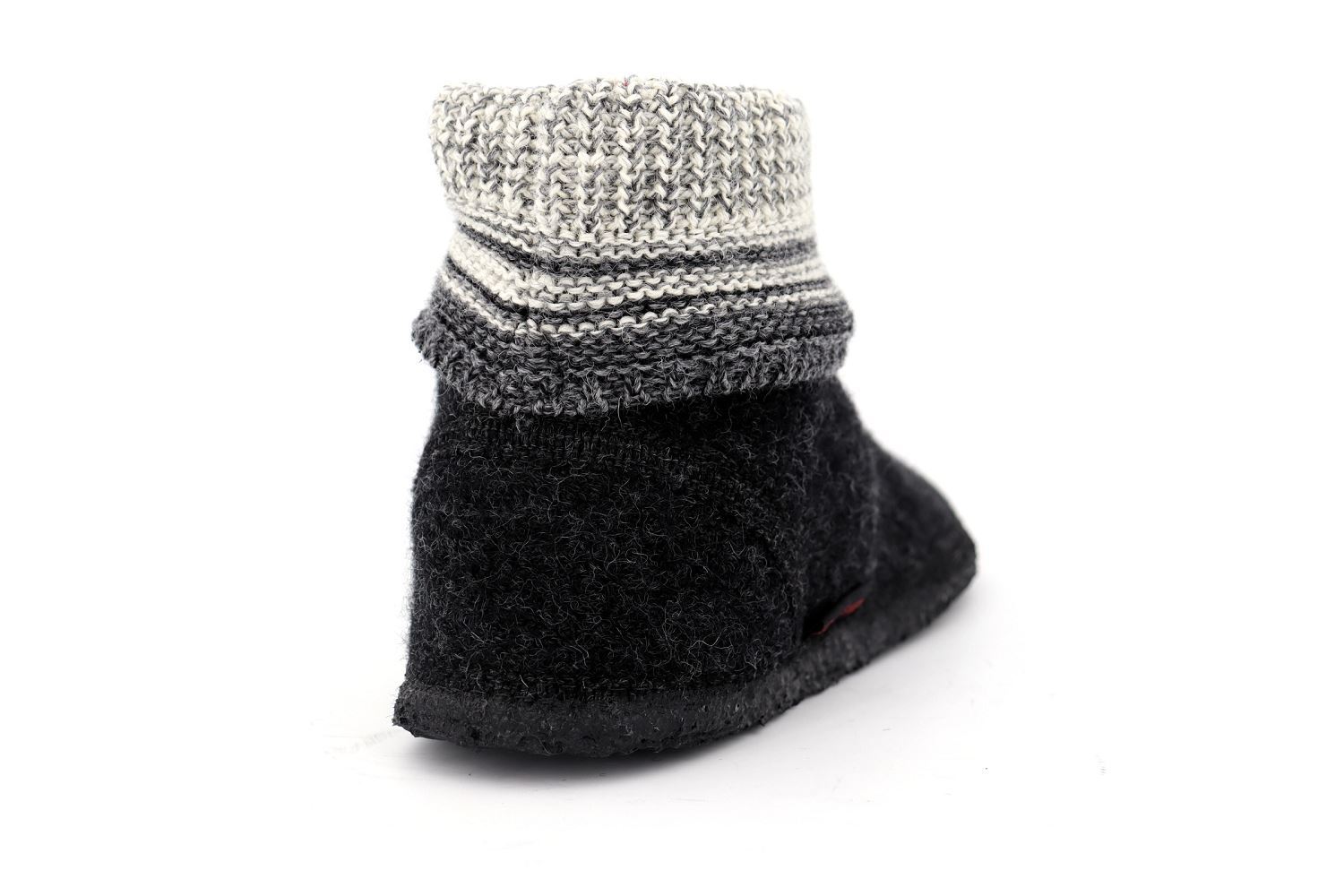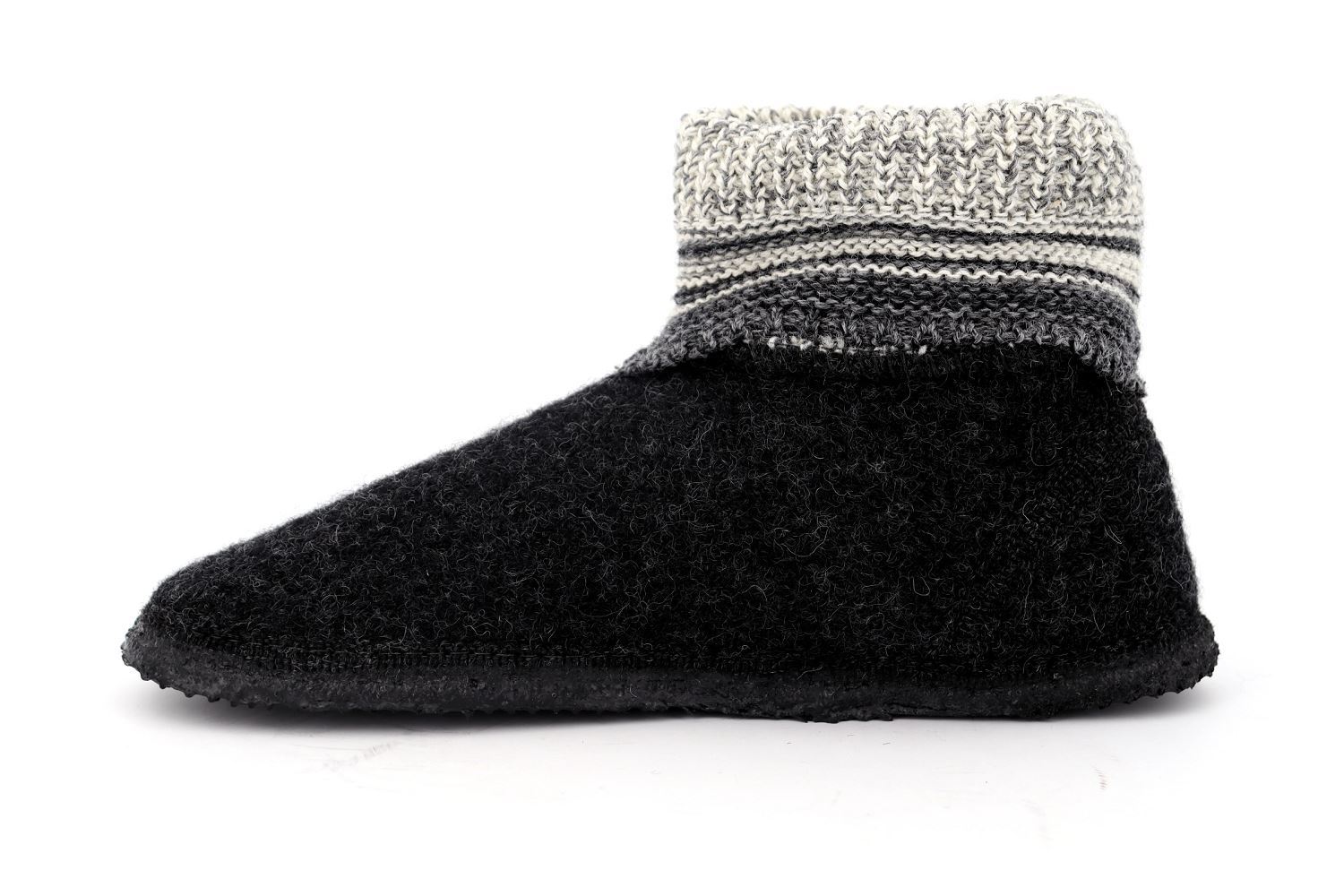 Chausson confortable avec des motifs brodés et tressés, 100% laine vierge et des semelles en caoutchouc naturel antidérapantes.