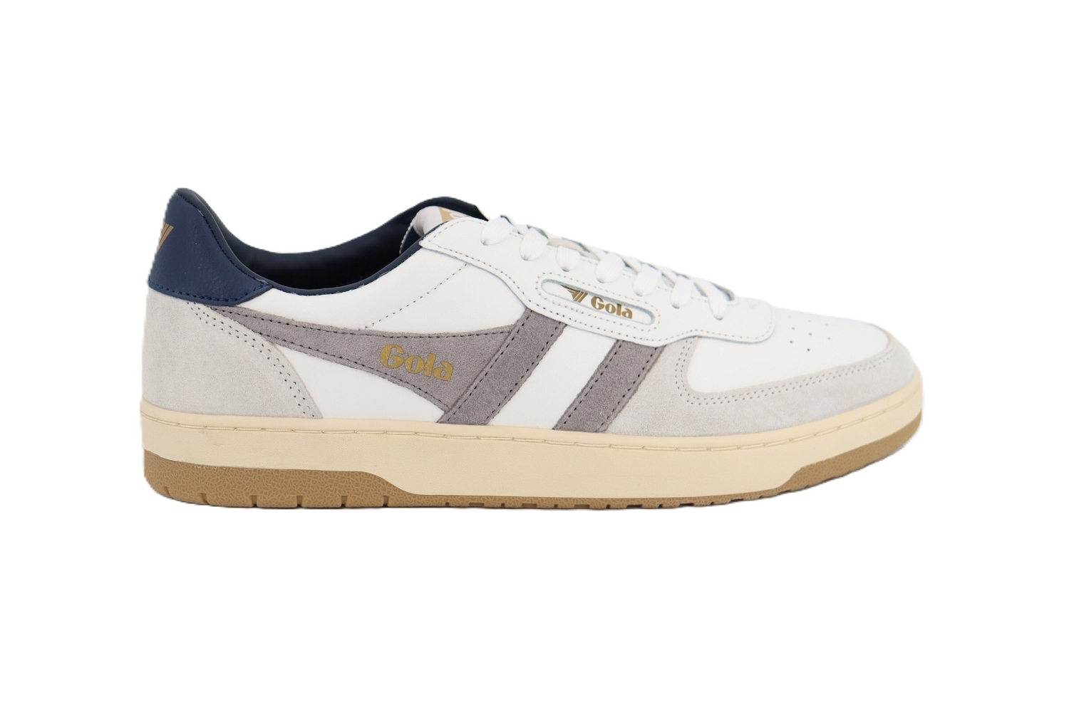 La Hawk de Gola revisite la basket masculine classique avec une allure rétro affirmée et un confort pensé pour le quotidien. Confectionnée en cuir blanc lisse, elle est sublimée par des empiècements en cuir suédé gris qui apportent relief et élégance. Sa semelle épaisse légèrement contrastée renforce le style vintage tout en assurant une bonne stabilité et un amorti agréable. Polyvalente et facile à associer, la Hawk s'impose comme une sneaker intemporelle, idéale pour un look casual soigné, du jean au chino.