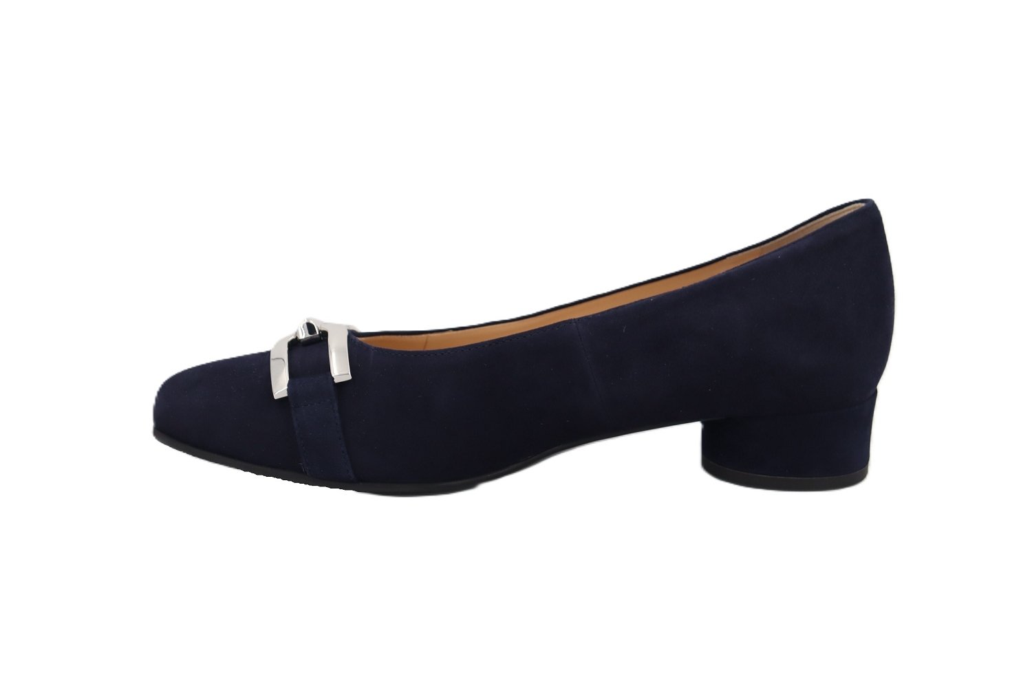 L'escarpin Premu de chez Hassia séduit par son élégance sobre et son confort remarquable. Confectionné en cuir velours bleu marine, il affiche une ligne épurée, un bout arrondi et un talon stable, sublimés par un détail métallique argenté sur l'avant. Un modèle chic et facile à porter, parfait pour accompagner vos tenues du quotidien comme vos looks plus habillés.