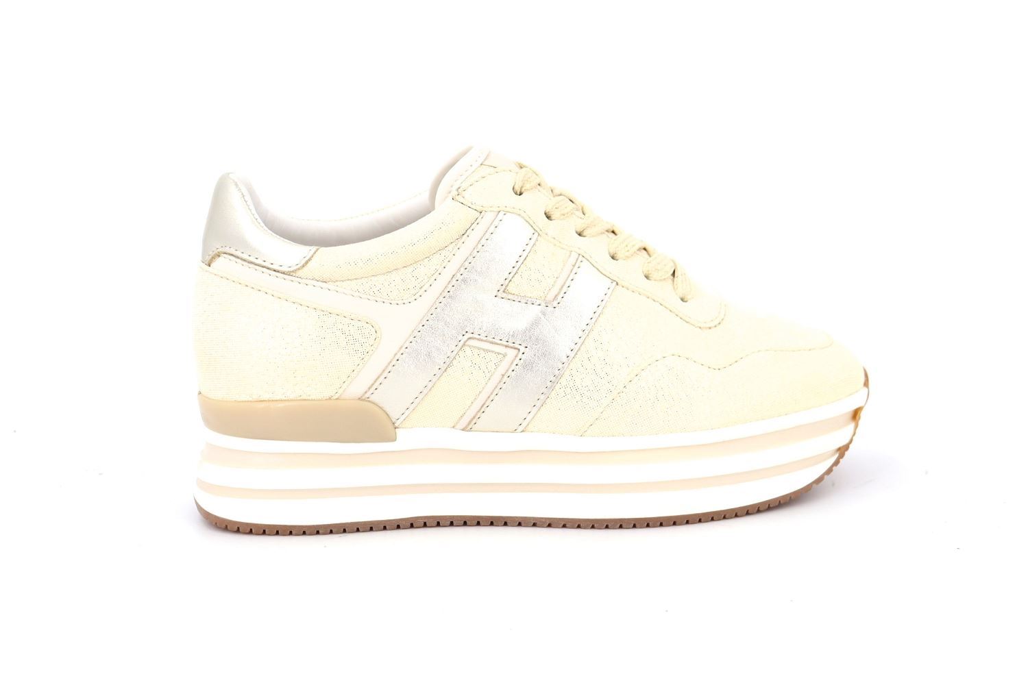 La Hogan H483 se distingue par sa semelle iconique ultra-légère et le H latéral souligné par un prolongement, qui donne du mouvement à la ligne de l'empeigne. Avec son esprit casual glam, cette sneaker pour femme en cuir velours et tissu shiny met en valeur un look quotidien tout en élançant la silhouette avec toutes les tenues.