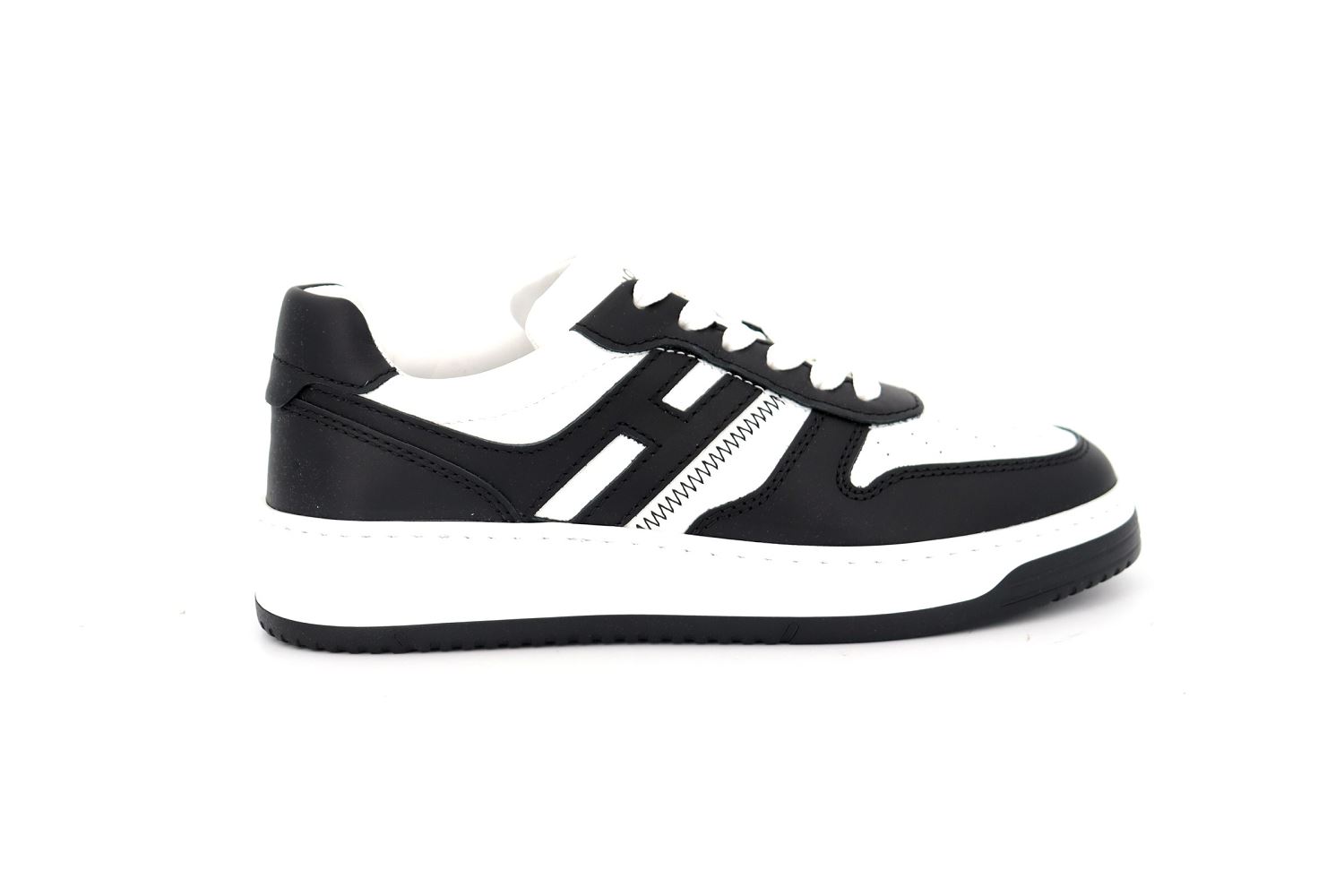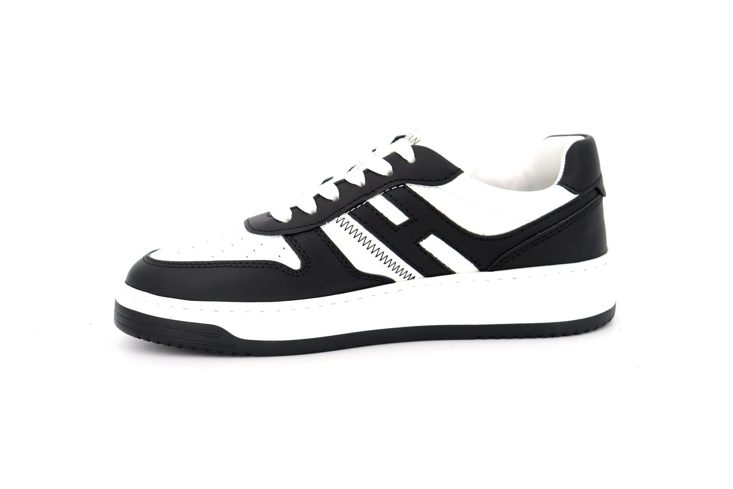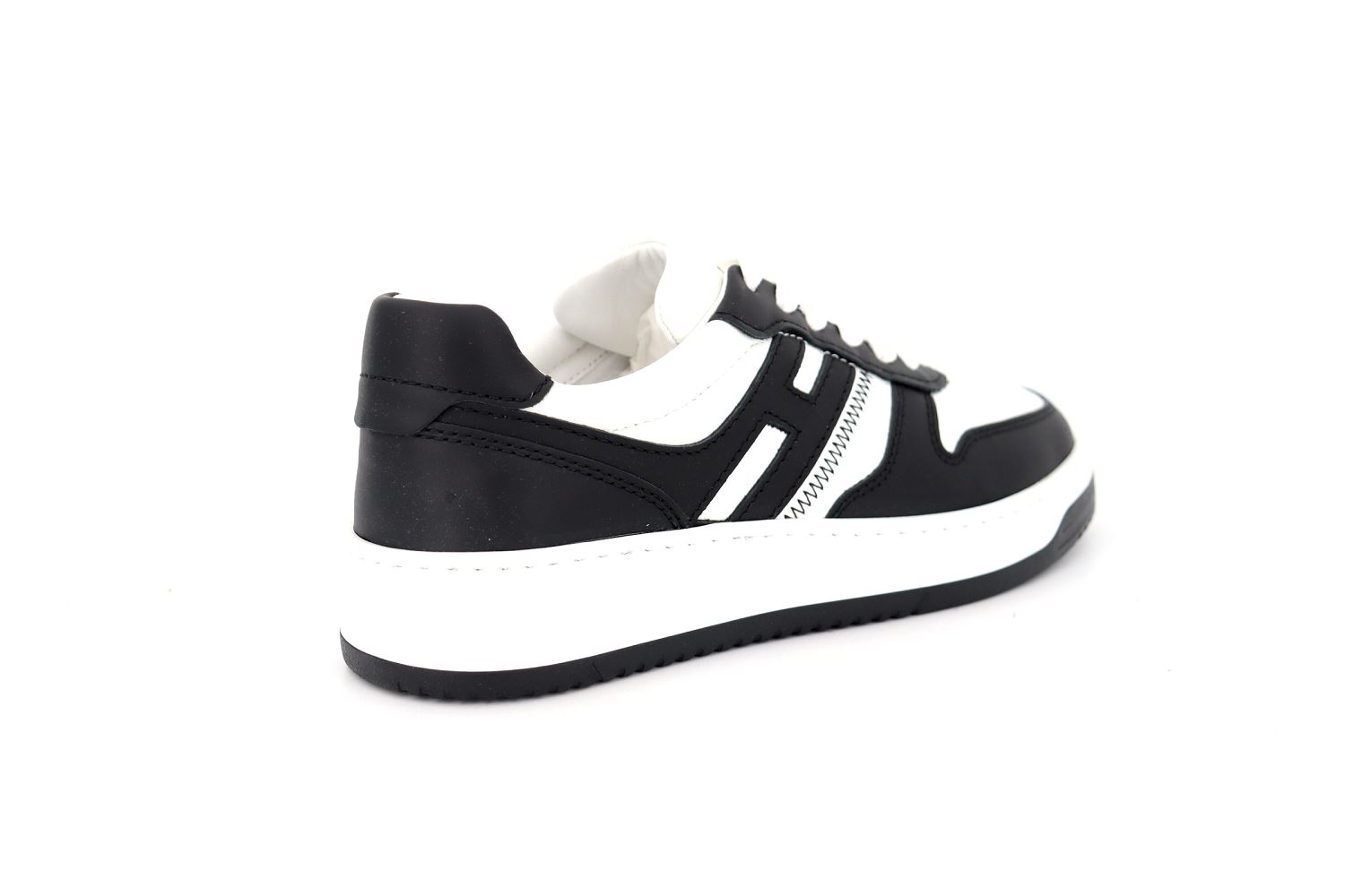 Nouvelle sneaker aux vibes rétro, la Hogan H630 allie des lignes de l'univers du basket aux signes caractéristiques de la marque. Le dessus en cuir nappa avec inserts en cuir lisse se distingue par un H allongé, qui tourne autour du talon. La semelle est en EVA extralight, avec le nouveau logo HGN86 en relief sur le côté et des lignes nuancées rappelant les rainures historiques Rebel. Véritable must-have du vestiaire contemporain, ce modèle dynamique est complété par une semelle en mousse à mémoire de forme qui assure souplesse et amorti.