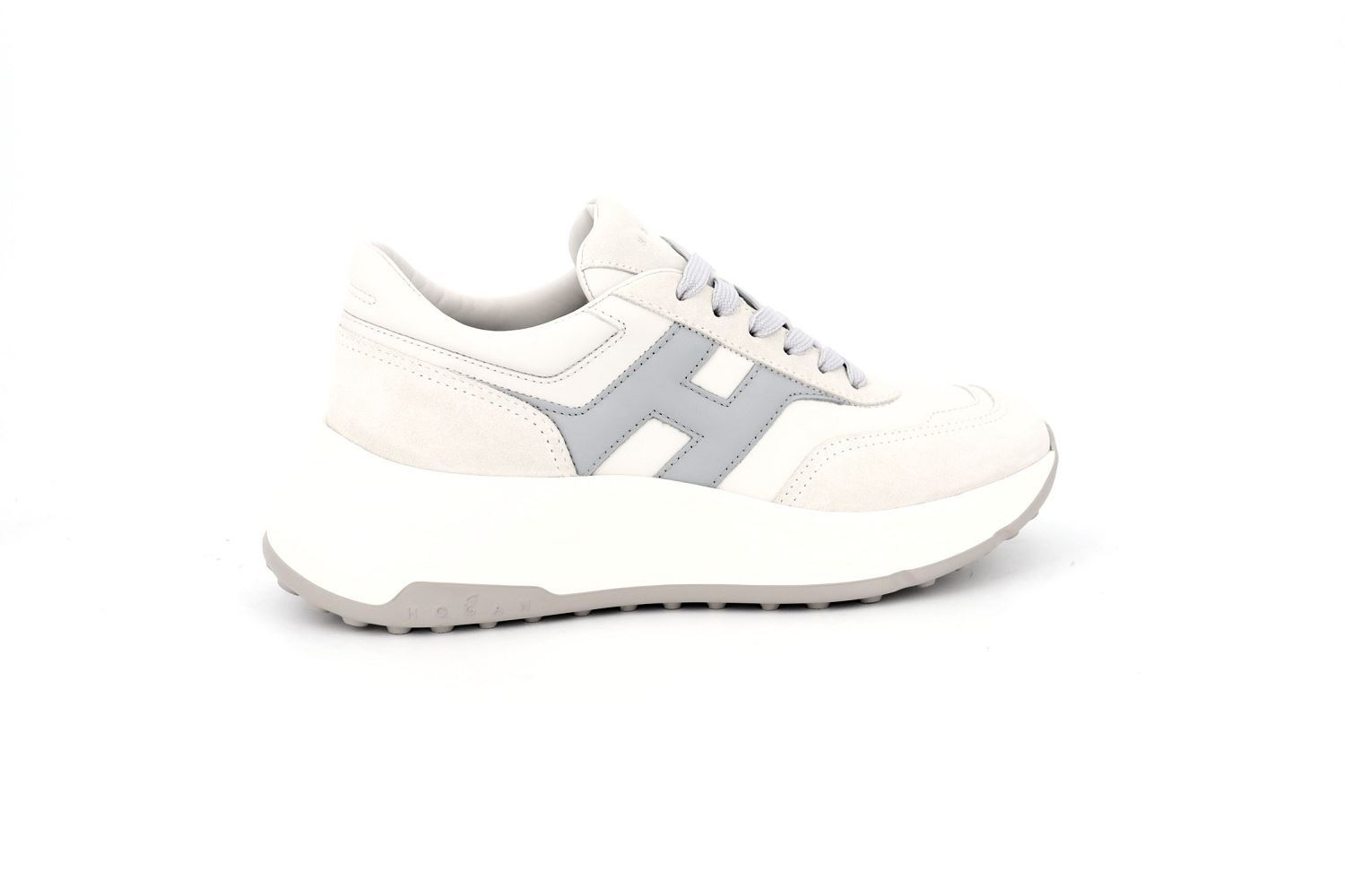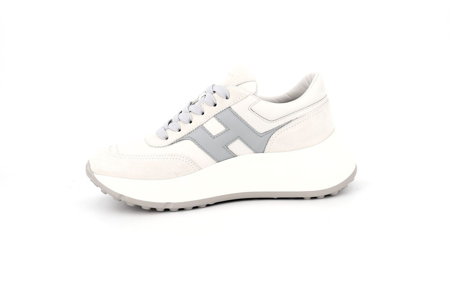 Les sneakers Hogan Hi-Fi déclinent au féminin la semelle Hyperlight avec crampons, avec une plateforme donnant élévation et élégance. En évoquant l'iconographie sportive des années 80 avec des finitions techniques et une vocation urbaine, elles sont caractérisées par une combinaison de lignes souples et vives. Le dessus est réalisé ici en cuir velours et nappa, avec un maxi H latéral. Un modèle athleisure énergique, avec une semelle interne en mousse à mémoire de forme qui assure un confort extra et l'amorti du chaussant.