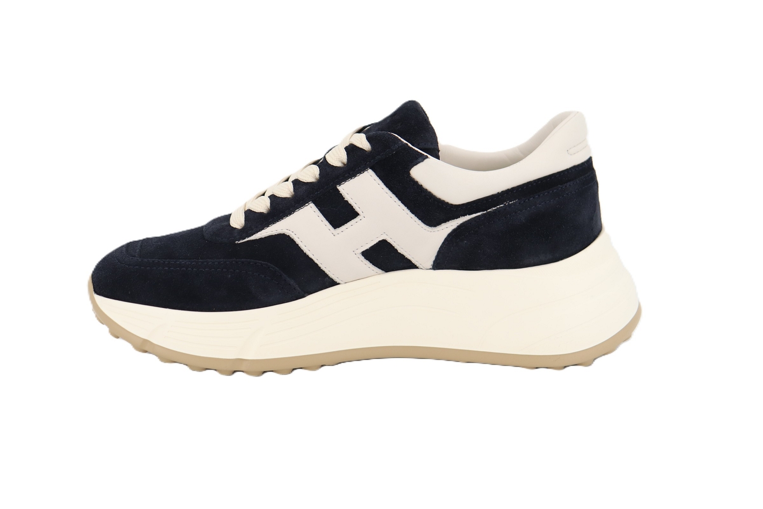 Les baskets Hogan H669 déclinent au féminin la semelle Hyperlight à crampons dans une version plateforme qui apporte à la fois élévation et élégance. Inspirées de l'iconographie sportive des années 80, elles mêlent lignes souples et dynamiques pour une silhouette urbaine au style affirmé. Confectionnées en cuir velours avec un maxi H latéral, elles offrent un rendu premium et contemporain. La semelle intérieure en mousse à mémoire de forme garantit un amorti confortable et un excellent maintien, pour une sneaker athleisure énergique, idéale au quotidien.