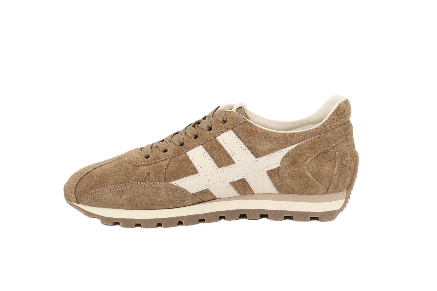 Un hommage aux célèbres sneakers qui font référence à l'année de création de la marque, les Hogan 86er sont proposées ici avec le détail iconique du H appliqué. La semelle extralight a un dessous avec crampons qui se dessinent également le renfort du talon. Complétée par une semelle interne, ces sneakers en cuir velours sont parfaites pour une tenue easy et relax.