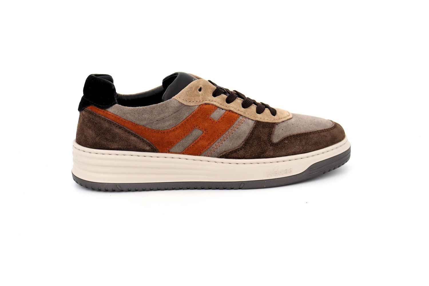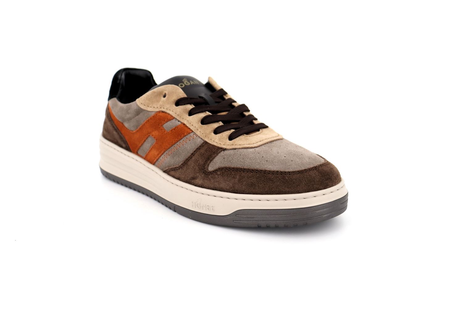 Nouvelle sneaker aux vibes rétro, la Hogan H630 allie des lignes de l'univers du basket aux signes caractéristiques de la marque. Le dessus en nubuck avec inserts en cuir nappa se distingue par un H allongé, qui tourne autour du talon. La semelle est en EVA extralight et des lignes nuancées rappelant les rainures historiques Rebel. Véritable must-have du vestiaire contemporain, ce modèle dynamique est complété par une semelle en mousse à mémoire de forme qui assure souplesse et amorti.