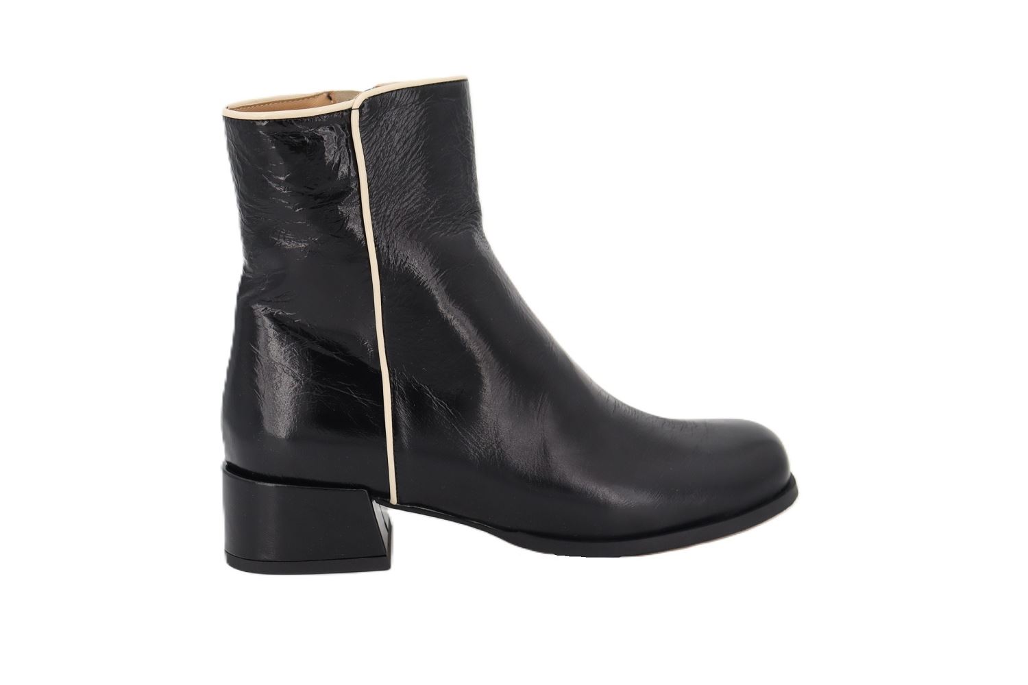 La bottine Milla de Hope associe modernité et élégance intemporelle. Confectionnée en cuir vernis noir, elle séduit par son éclat raffiné et sa silhouette affirmée, idéale pour donner du caractère à vos looks de saison. Polyvalente et confortable, elle accompagne aussi bien vos tenues professionnelles que vos sorties citadines, tout en ajoutant une touche chic et contemporaine.