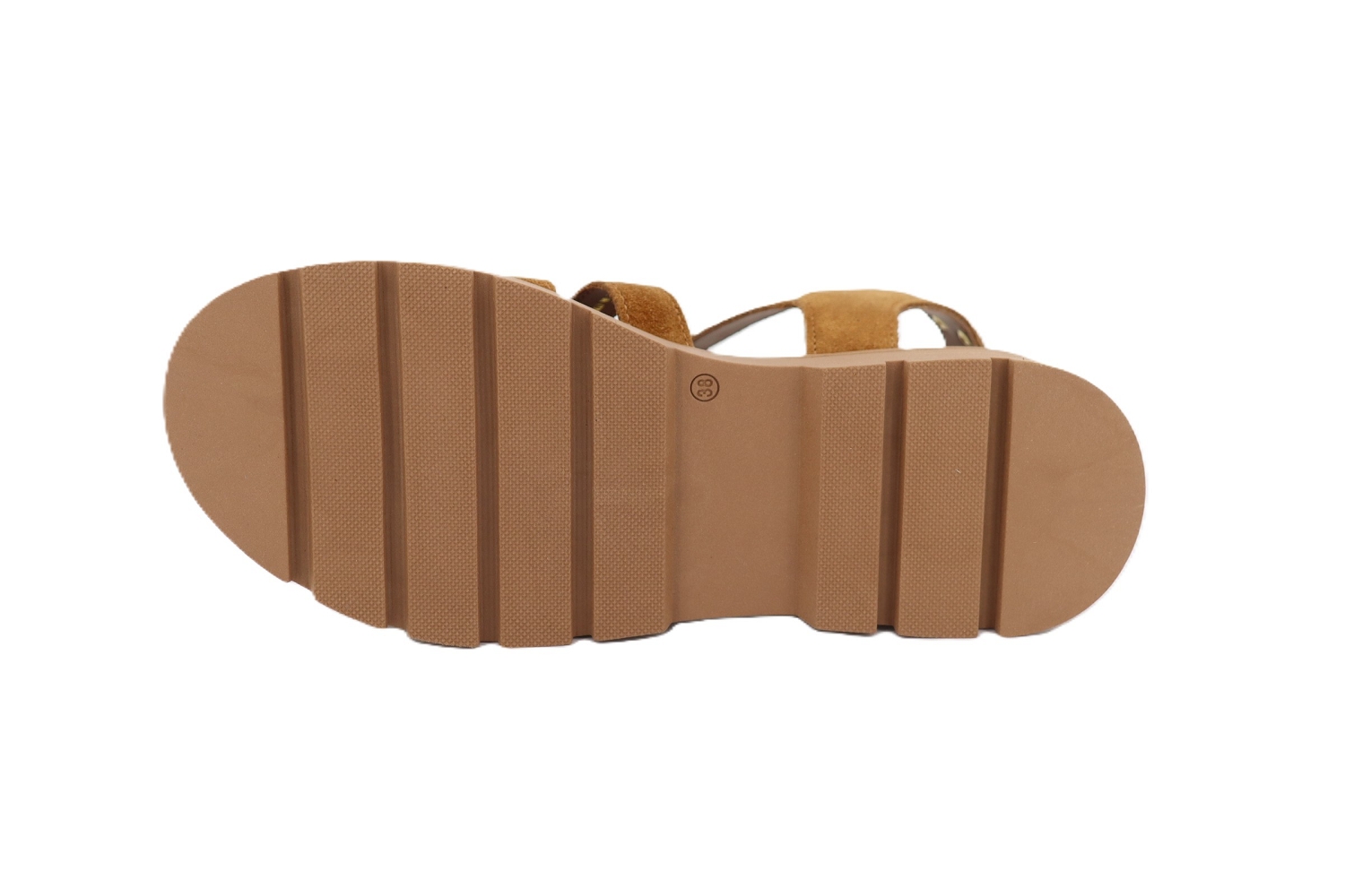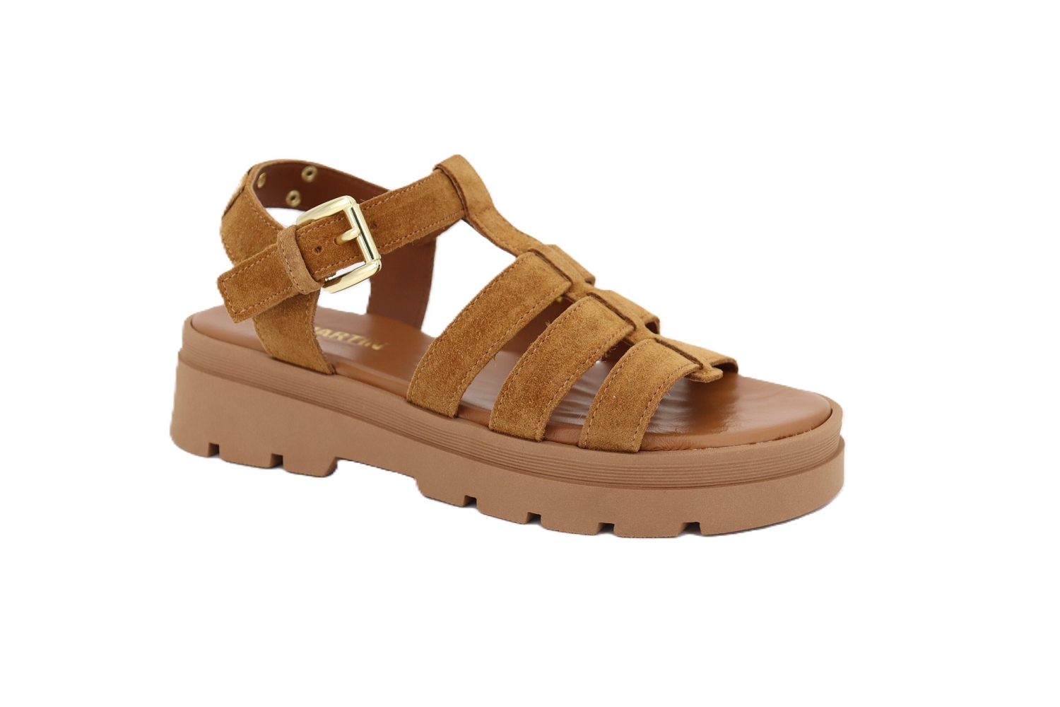 La sandale nu-pieds DELICE de chez JB Martin séduit par son cuir suède marron camel au toucher velouté et à l'allure naturellement élégante. Ses multiples brides enveloppantes offrent un excellent maintien du pied, tandis que la bride cheville à boucle assure un ajustement précis et confortable. Montée sur une semelle épaisse crantée, elle apporte une touche moderne et affirmée tout en garantissant une bonne stabilité à la marche. Facile à associer, elle se porte aussi bien avec un jean, une robe fluide ou un short estival. Un modèle à la fois tendance et confortable, idéal pour accompagner les journées d'été avec style.