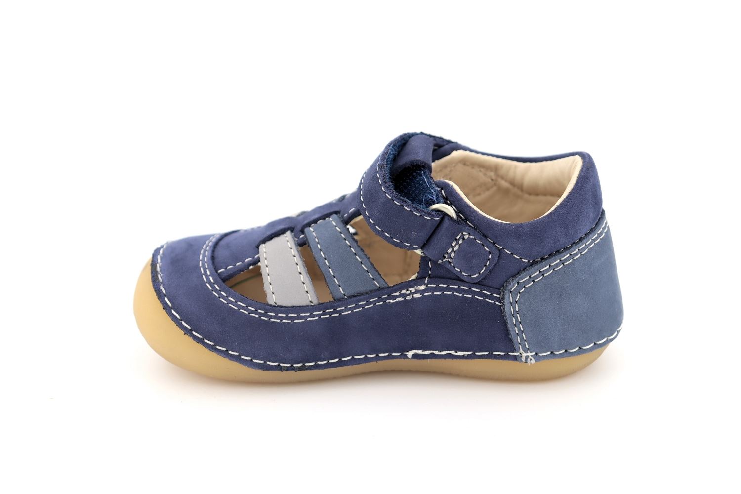 Le modèle Sushy est une paire de babies pour garçon composée d'une tige en cuir de couleur bleu tricolore et d'une doublure 100% cuir. Ces salomés vous garantissent confort et robustesse grâce à leur semelle intérieure en 100% cuir et leur semelle extérieure en synthétique. Il s'adapte aux pieds de tous les garçons avec sa fermeture à scratch. N'attendez plus pour vous faire plaisir!