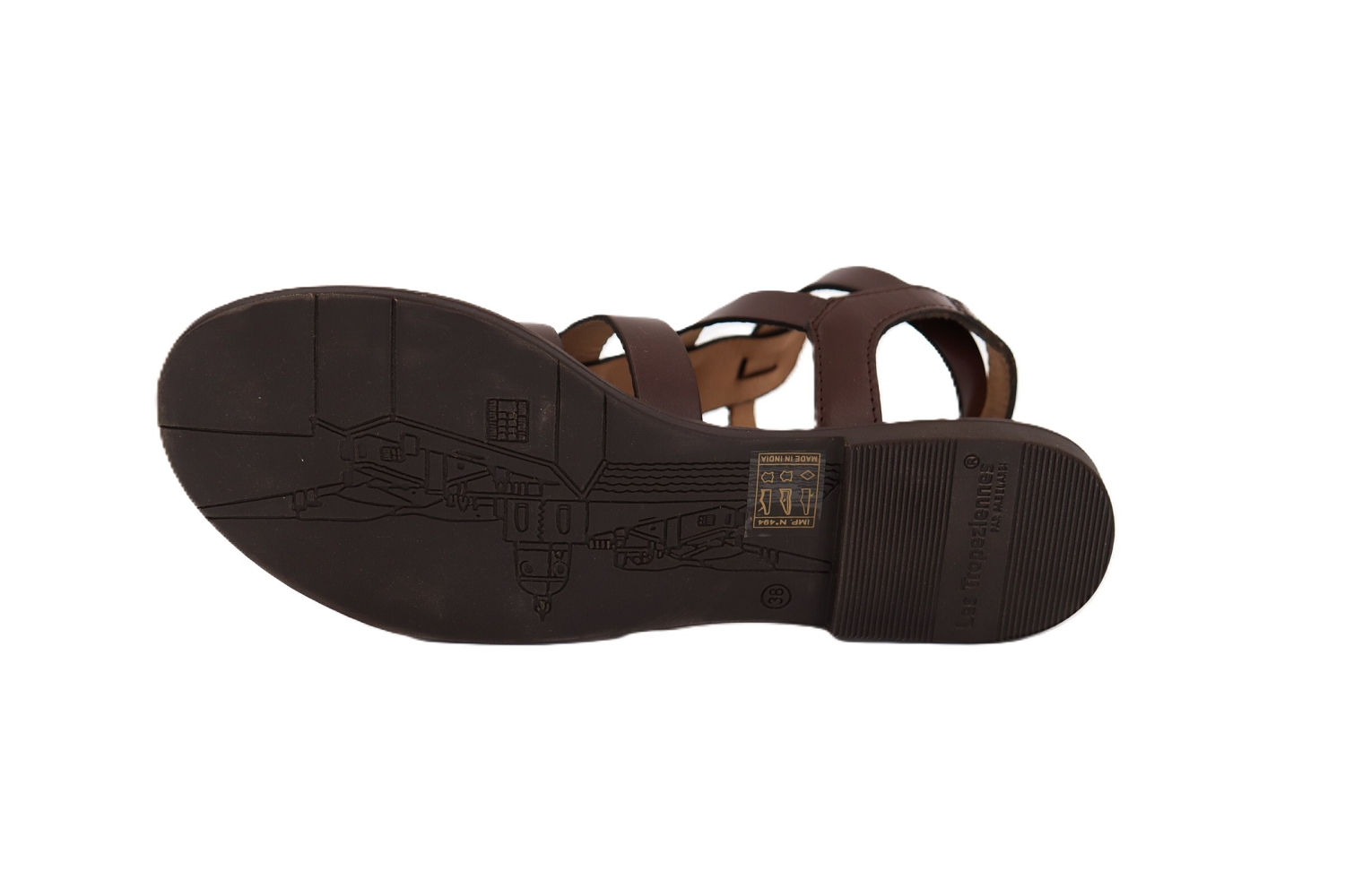 Sandale à la fois affirmée et élégante, le modèle HAGORA de Les Tropeziennes séduit par son cuir marron chocolat et son design esprit spartiates. Ses multiples brides structurées habillent le pied avec caractère tout en conservant une allure raffinée et intemporelle. Dotée de brides ajustables avec boucles, elle assure un excellent maintien tout au long de la journée. Sa semelle plate légère offre un confort optimal, idéal pour accompagner vos journées estivales avec style. Une sandale Les Tropeziennes parfaite pour allier maintien, confort et élégance avec une touche audacieuse et féminine.