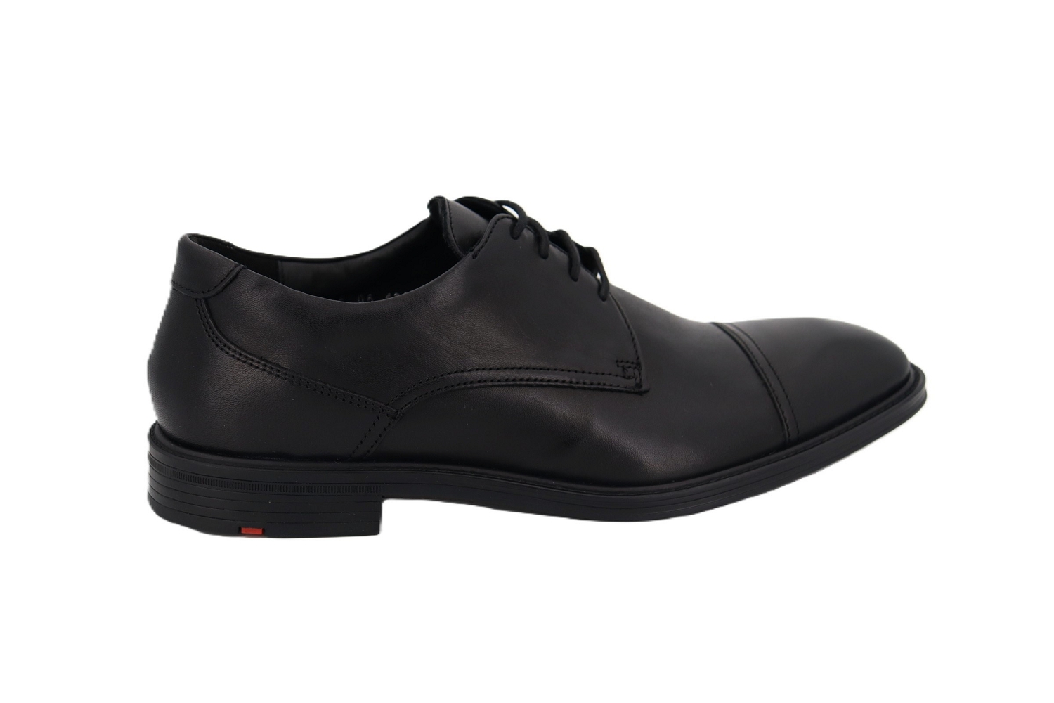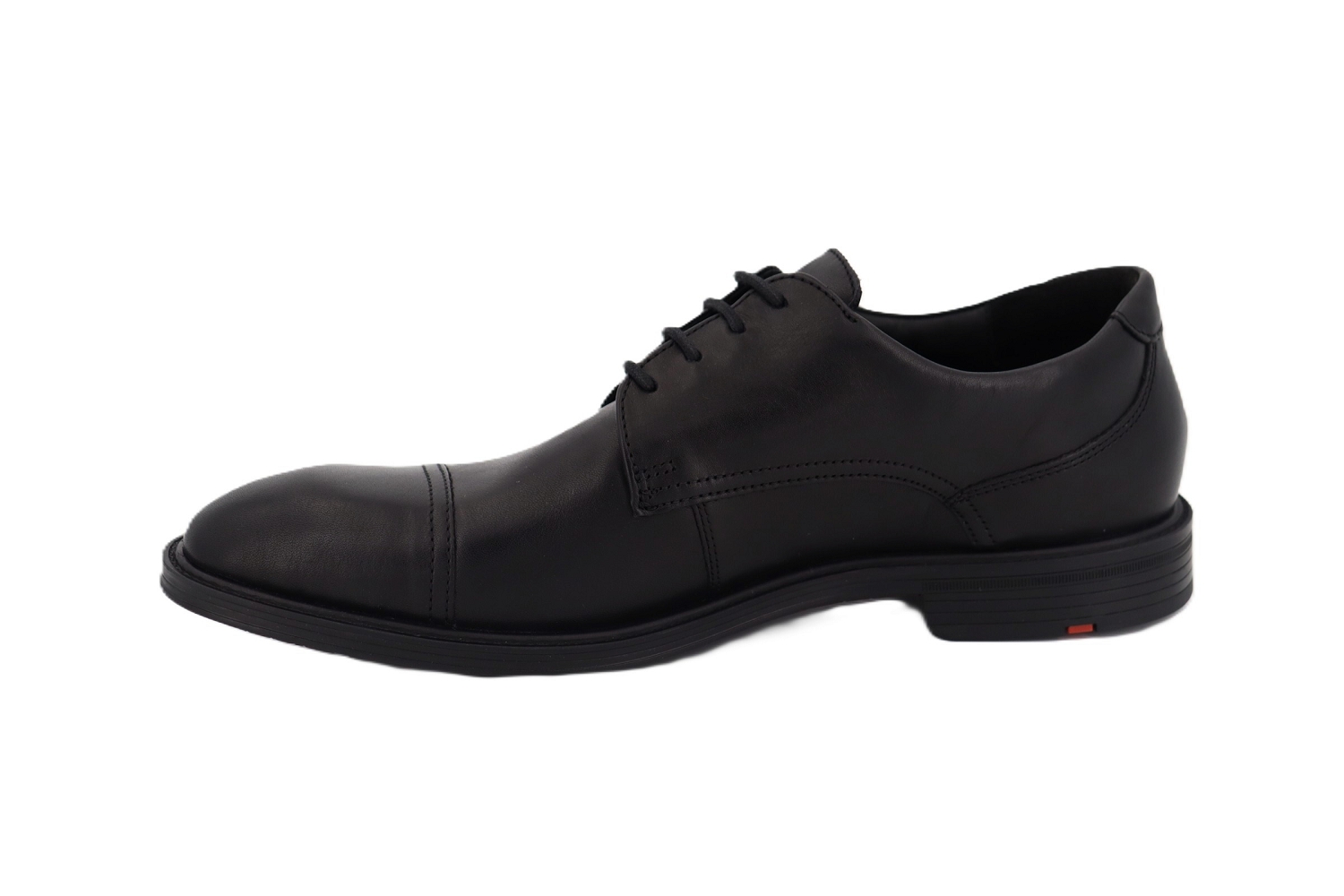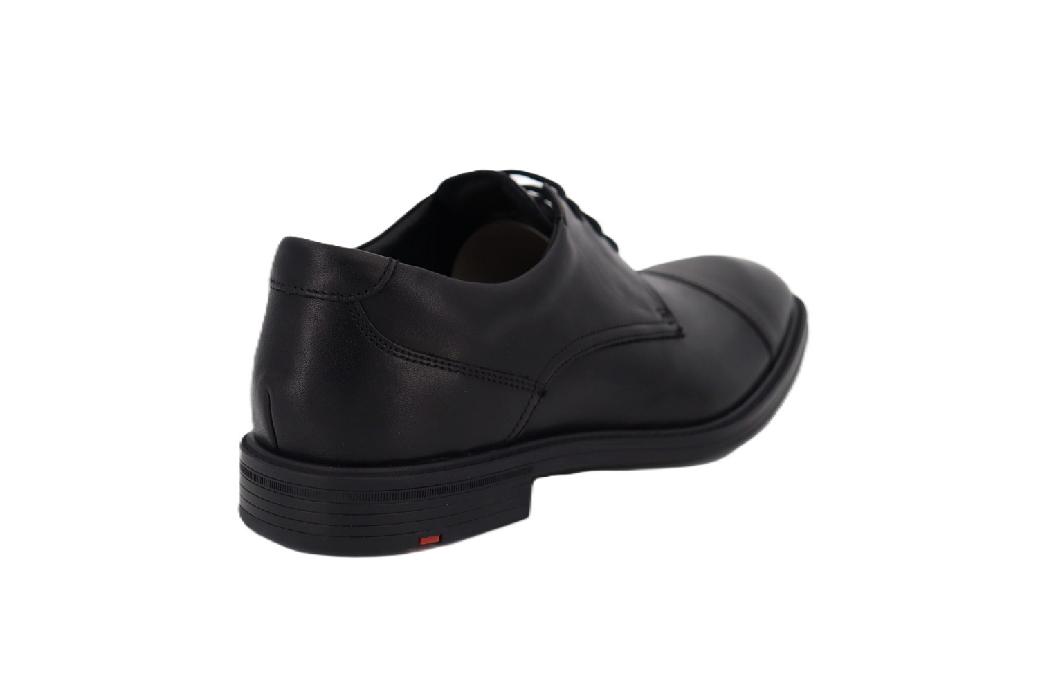 Pensée pour l'homme actif et élégant, la LLOYD X-MOTION 150 revisite la chaussure derbie classique avec une approche moderne et raffinée. Confectionnée en cuir lisse noir de haute qualité, elle séduit par son allure intemporelle rehaussée d'un bout légèrement étroit qui apporte une touche contemporaine. Entièrement doublée cuir, elle garantit un confort optimal tout au long de la journée, tandis que sa semelle intérieure amovible en cuir permet un ajustement personnalisé. Grâce à son laçage précis, cette derbie s'adapte parfaitement au pied. Un modèle idéal pour accompagner les tenues professionnelles et formelles, alliant savoir-faire, confort et élégance, signé Lloyd.