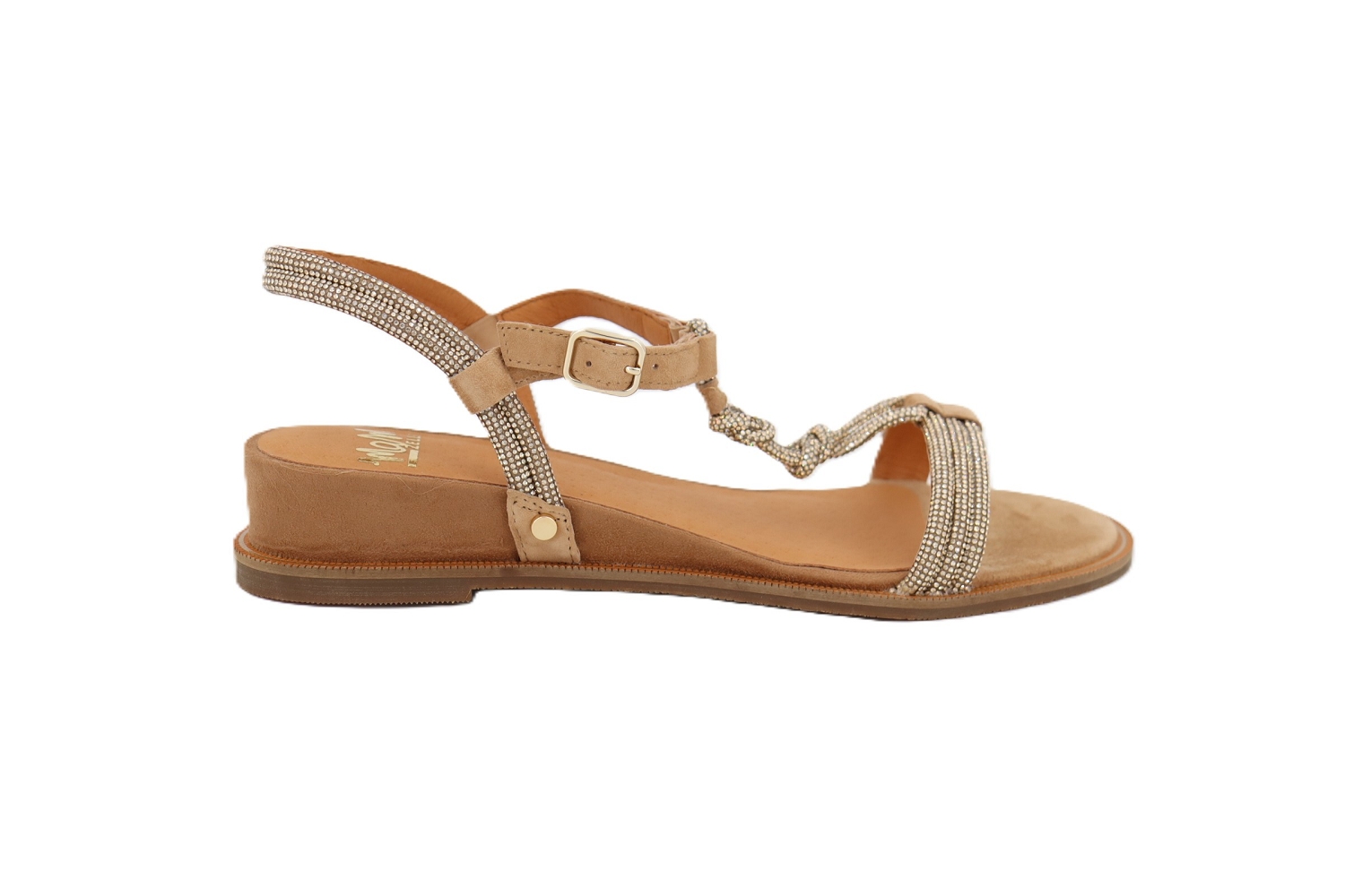 La sandale nu-pieds OKAPI de chez Mamzelle incarne l'élégance estivale avec une touche précieuse. Confectionnée en cuir velours beige, elle séduit par sa teinte naturelle et facile à associer, idéale pour sublimer les tenues d'été. Ses fines brides délicatement ornées apportent une note lumineuse et raffinée, tandis que la bride cheville réglable assure un maintien parfait. Montée sur un léger talon compensé discret, elle offre un confort agréable au quotidien tout en allongeant subtilement la silhouette. Parfaite avec une robe fluide, un pantalon en lin ou un short chic, la OKAPI est la sandale féminine et lumineuse qui accompagne vos journées ensoleillées avec style et délicatesse.