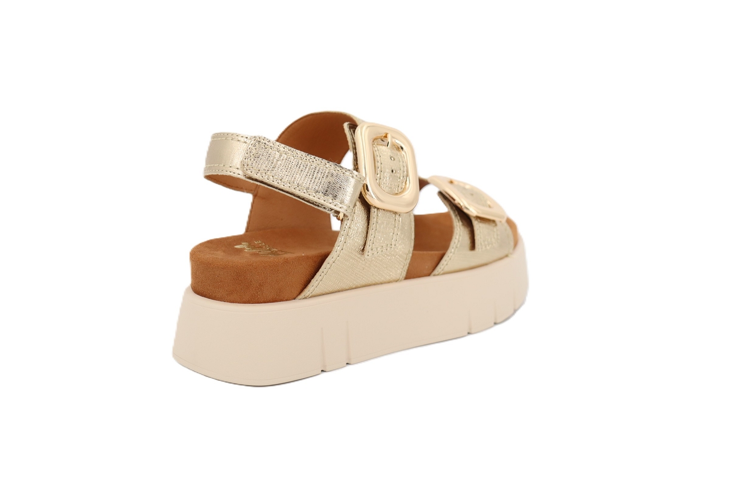 La sandale nu-pieds USIFI de chez Mamzelle affirme un style audacieux et lumineux. Confectionnée en cuir doré, elle capte la lumière à chaque pas et apporte une touche éclatante à vos tenues estivales. Ses larges brides sont sublimées par de généreuses boucles dorées, véritables éléments signature qui structurent la silhouette tout en assurant un ajustement précis. Montée sur une semelle plateforme épaisse et légère, elle offre une hauteur confortable et une stabilité idéale au quotidien. Moderne, féminine et pleine de caractère, la USIFI se porte aussi bien avec une robe fluide qu'avec un jean ou un short chic, pour un look tendance et affirmé tout l'été.