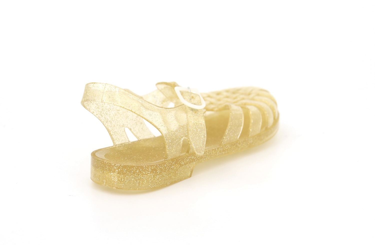 Le modèle Sun est une paire de sandales pour femmes de la marque Méduse disponible en doré pailleté. Cette sandale est 100% made in france.