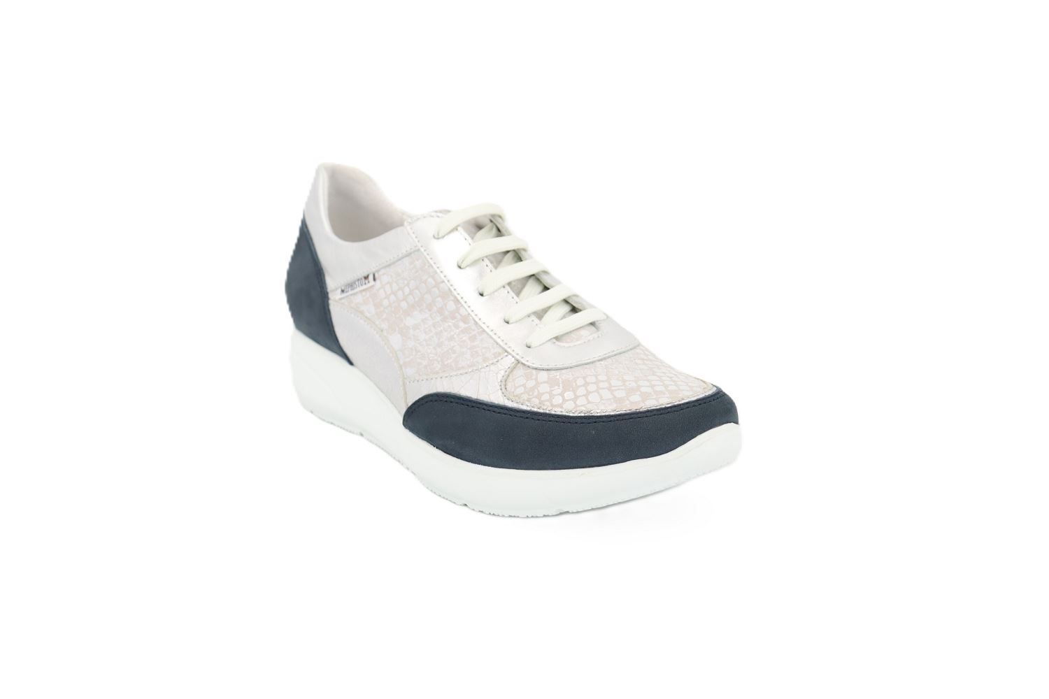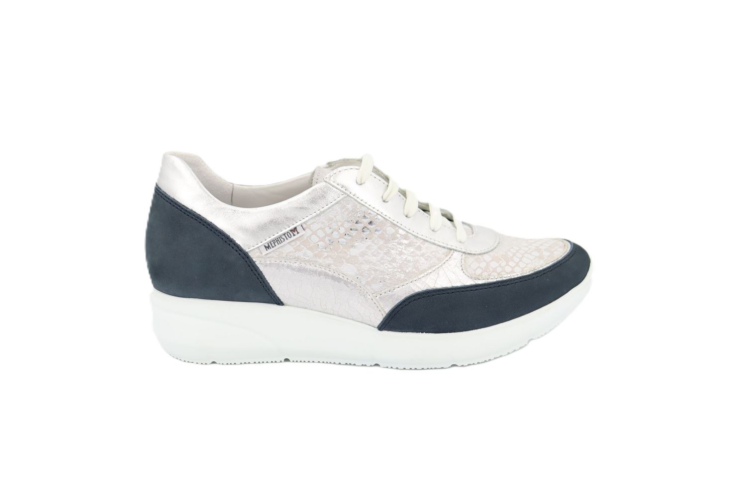 La Mephisto Diane est une basket féminine premium pensée pour offrir un équilibre parfait entre élégance moderne et confort absolu. Sa conception mêle subtilement cuir lisse argenté et empiècements texturés effet reptile, créant un look lumineux et tendance. Le contraste du talon et de l'avant en nubuck bleu marine apporte une touche chic tout en renforçant la durabilité. Dotée de la technologie Soft-Air, elle garantit une absorption optimale des chocs et réduit la fatigue lors de la marche. Sa semelle légère et adhérente assure stabilité et bien-être au quotidien. Un modèle polyvalent, idéal pour un style dynamique et raffiné.