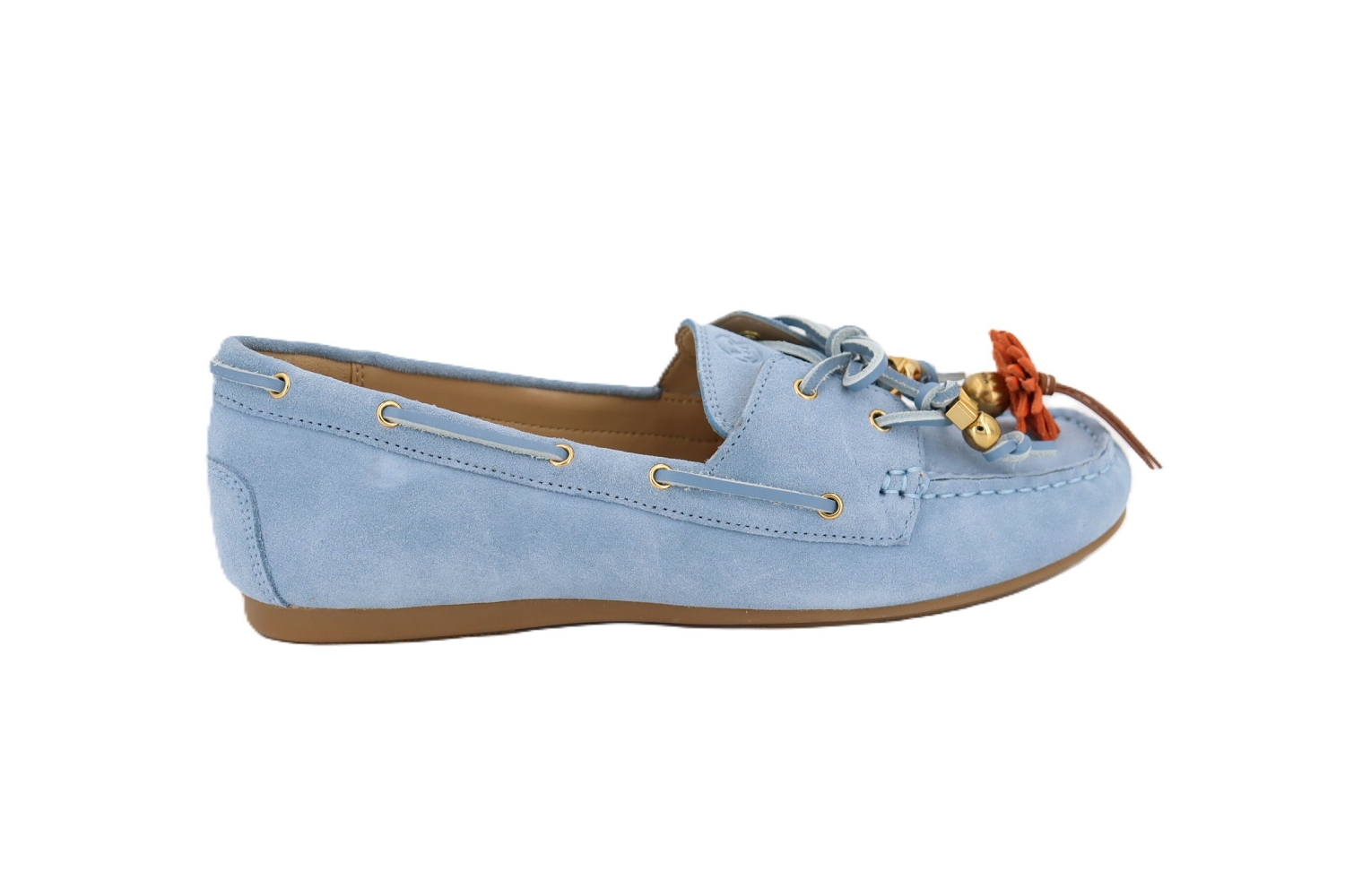 Le mocassin Fallon en cuir suédé bleu signé Michael Kors revisite l'esprit nautique avec une élégance moderne. Souple et léger, il se distingue par ses détails raffinés et sa silhouette intemporelle, idéale pour apporter une touche casual chic à vos tenues du quotidien comme de l'été.