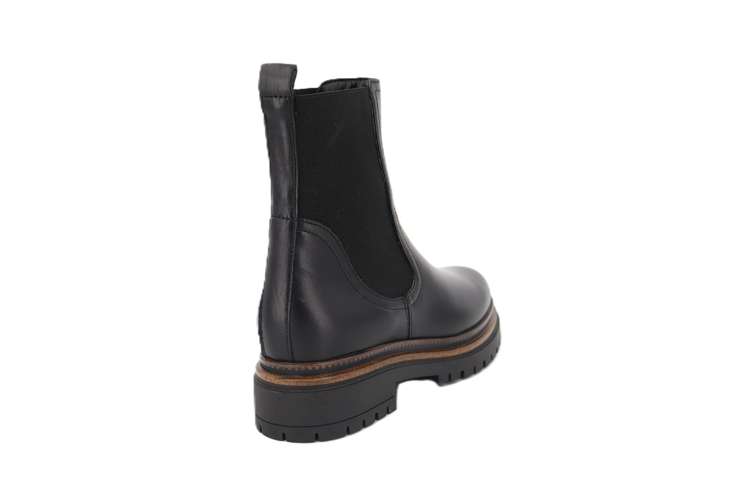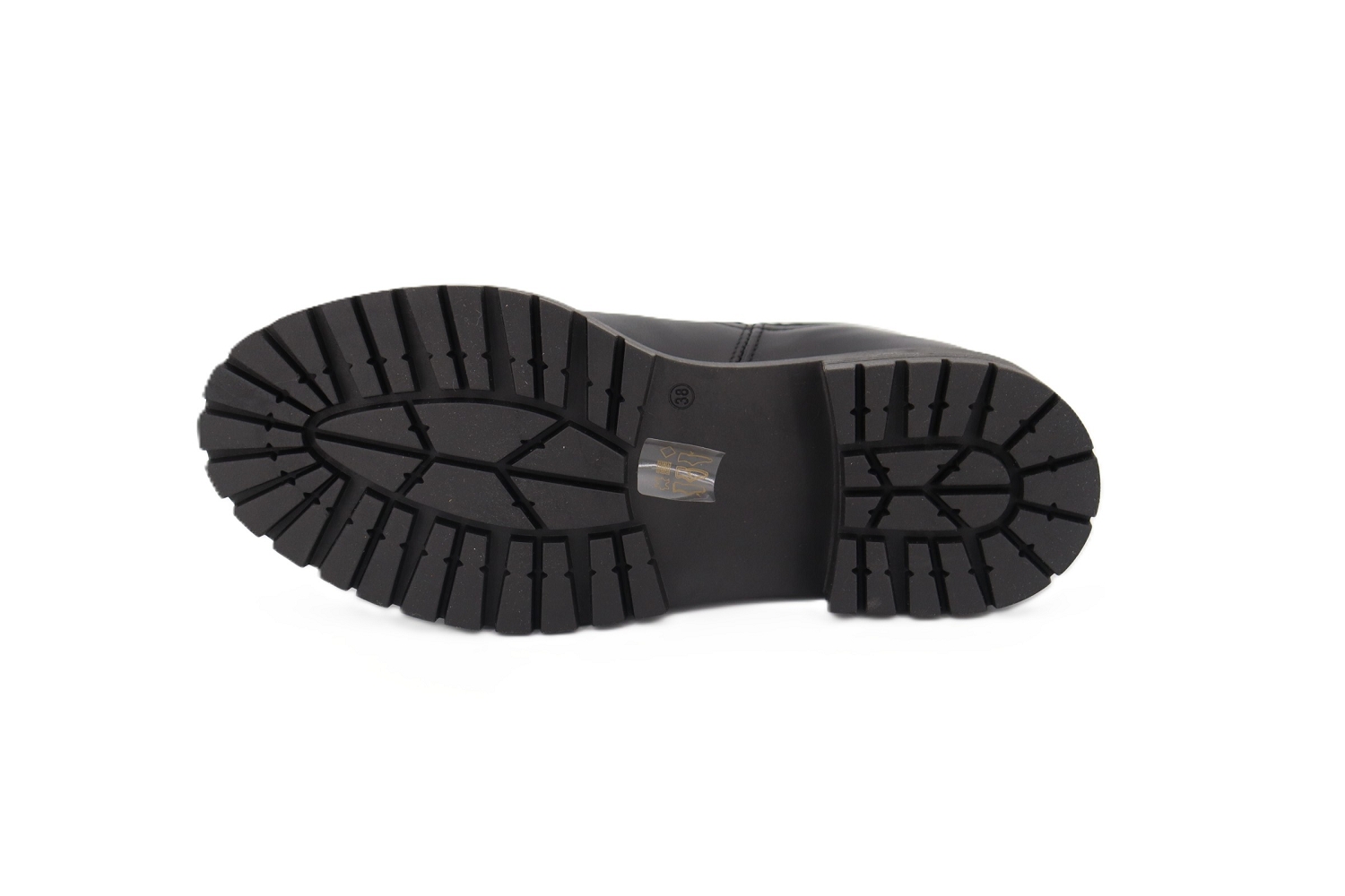 Les bottines en cuir de la ligne Derek associent la force des boots militaires à l’élégance féminine du style Chelsea. Leur semelle crantée apporte une touche sportive et moderne, pour une silhouette contrastée et affirmée.