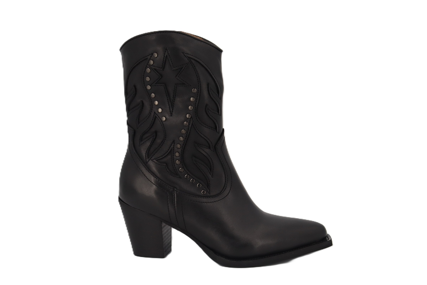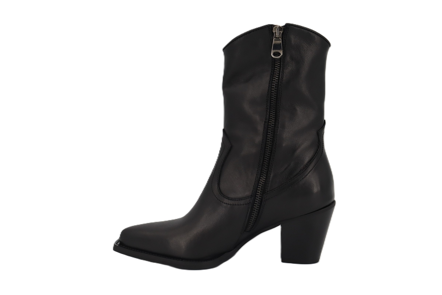 La boots Melya de Muratti revisite l'esprit western avec élégance et modernité. Réalisée en cuir noir de belle qualité, elle séduit par ses finitions soignées et son style affirmé. Ses lignes inspirées du Far West apportent caractère et authenticité, tandis que sa coupe confortable et sa semelle robuste en font une alliée idéale du quotidien. Facile à associer, elle s'accorde aussi bien avec un jean qu'avec une robe pour un look tendance et décontracté.