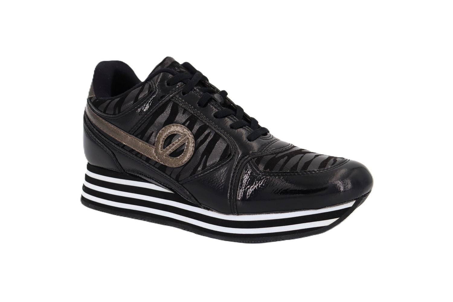 La basket Parko Jogger de chez No Name affirme un look audacieux avec son synthétique noir craquelé et ses empiècements zébrés brillants. Montée sur une semelle compensée à bandes contrastées, elle apporte une touche mode assumée tout en garantissant un excellent confort au quotidien. Une sneaker forte en style pour booster vos tenues urbaines.
