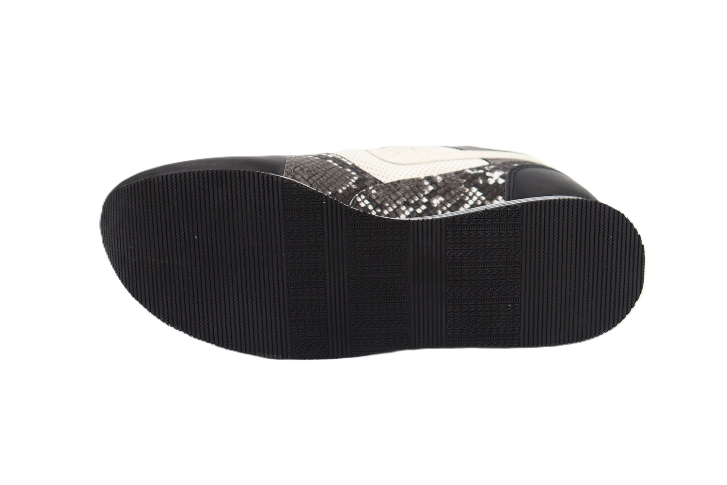 La basket Parko Jogger de chez No Name séduit par son mix de synthétique noir et blanc associé à un imprimé serpent graphique. Montée sur une semelle compensée à bandes contrastées, elle offre un style affirmé et un confort idéal pour le quotidien. Une sneaker urbaine qui ne passe pas inaperçue.