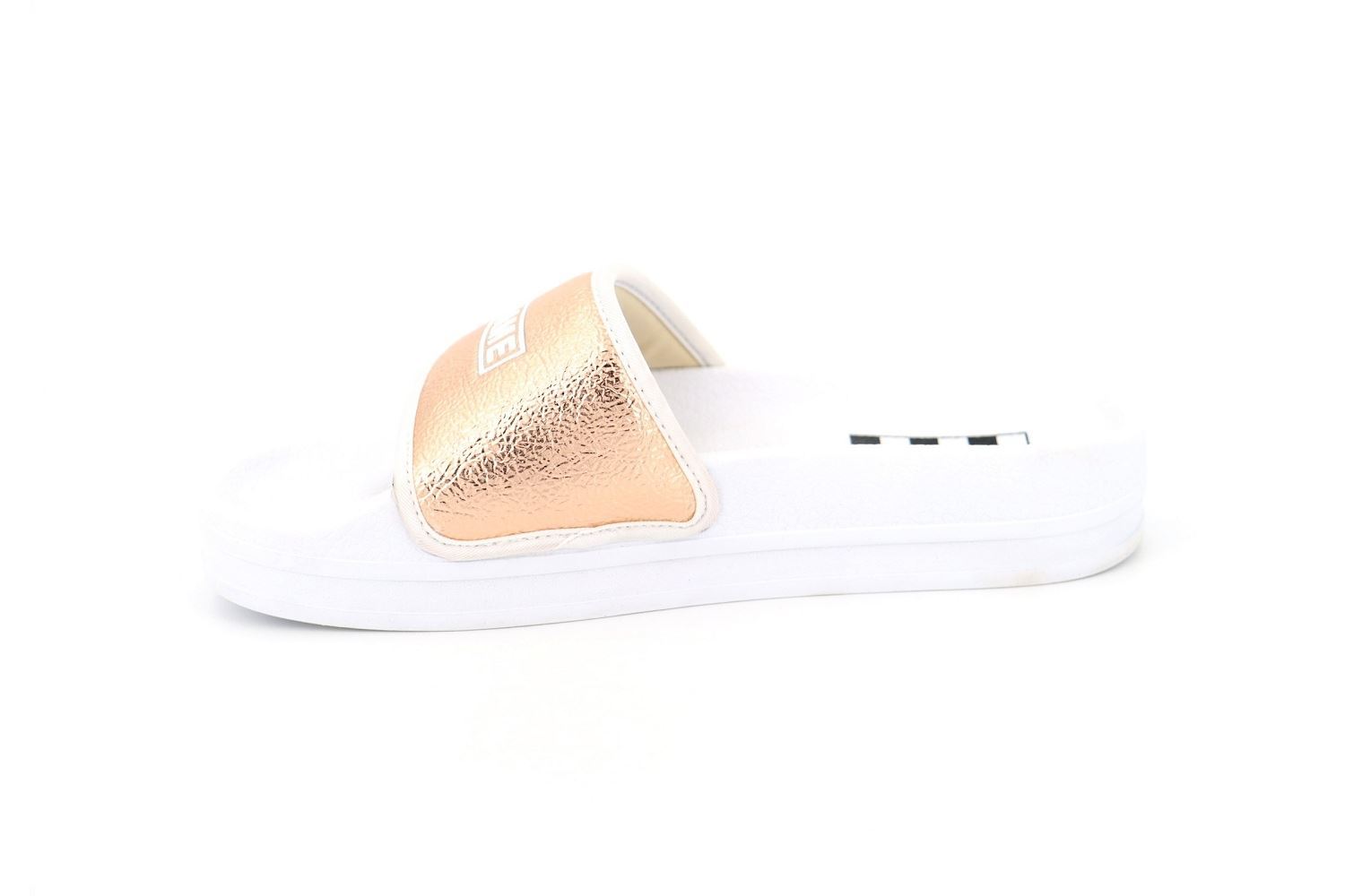 Pour ceux qui aiment se détendre, la mule Jungle Slaps de chez No Name à enfiler au bord de la piscine de couleur blanc et rose gold est un incontournable de votre sac fourre-tout de vacances cette saison. Le matériau souple et flottant est antidérapant et peut être porté en toute sécurité dans l'eau. Associez-la à votre paréo préféré et à une margarita bien fraîche.