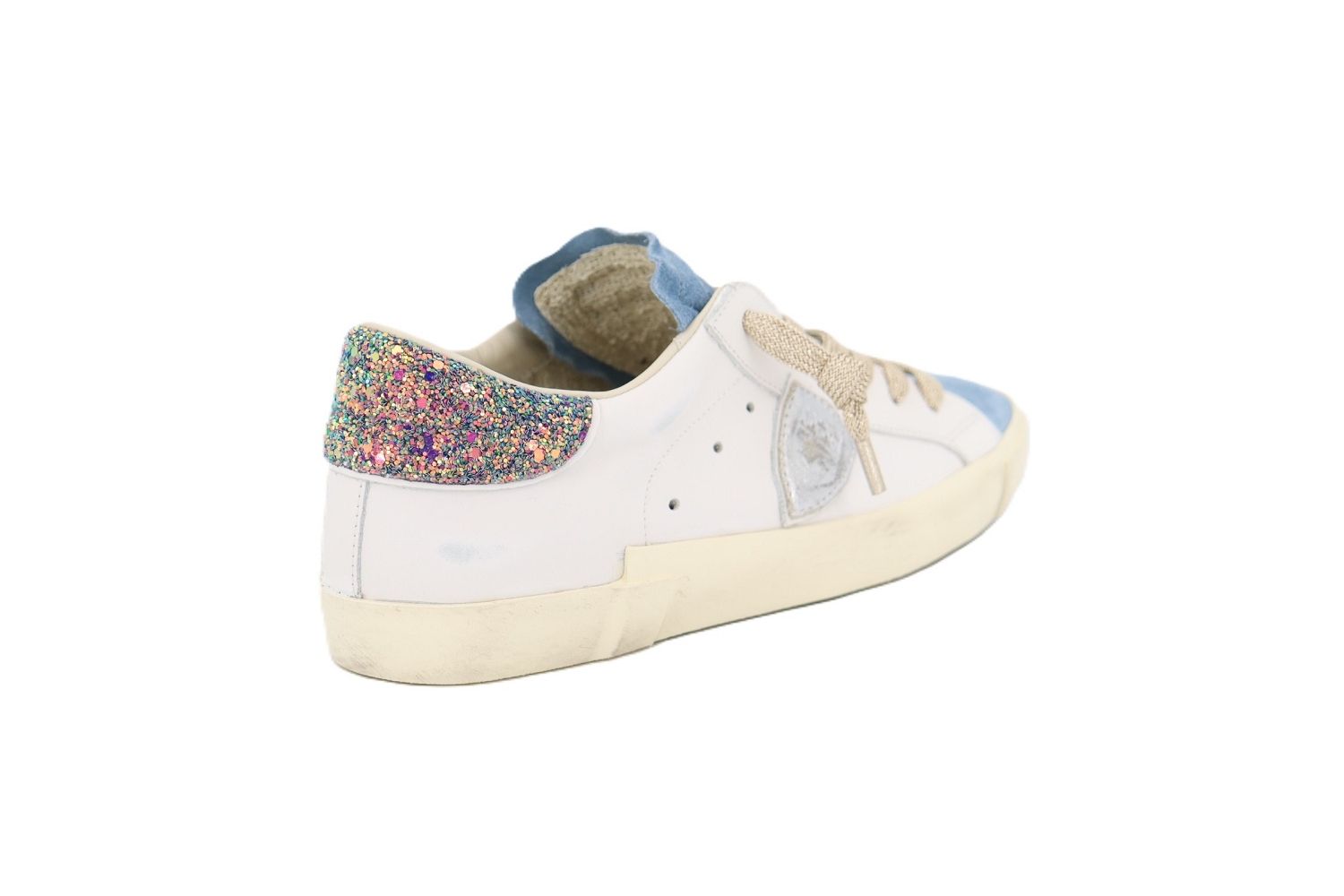 Icône au style affirmé, la Prsx revisite l'esprit vintage avec une touche lumineuse et audacieuse. Sa tige en cuir blanc à l'effet volontairement patiné est rehaussée de détails scintillants et colorés, pour une allure pleine de personnalité. Le contrefort pailleté bleu fait écho à la languette en suède et aux lacets pailletés assortis, créant un jeu de matières et de reflets résolument mode. La semelle aux rainures artisanales et à l'effet usé vient parfaire ce design iconique. Une sneaker de caractère, idéale pour celles qui aiment affirmer leur style avec originalité.