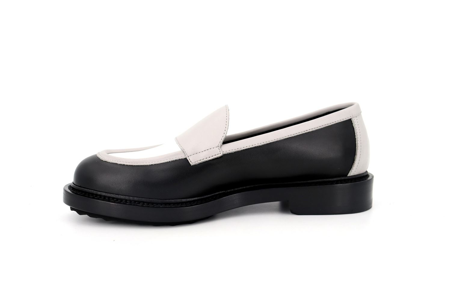 De loin, le mocassin John de la maison Pierre Hardy présente tous les signes extérieurs du mocassin américain. De près, un archétype à l’allure preppy détourné par le contraste entre l’architecture de la chaussure et l’épaisseur de sa semelle débordante et structurée.