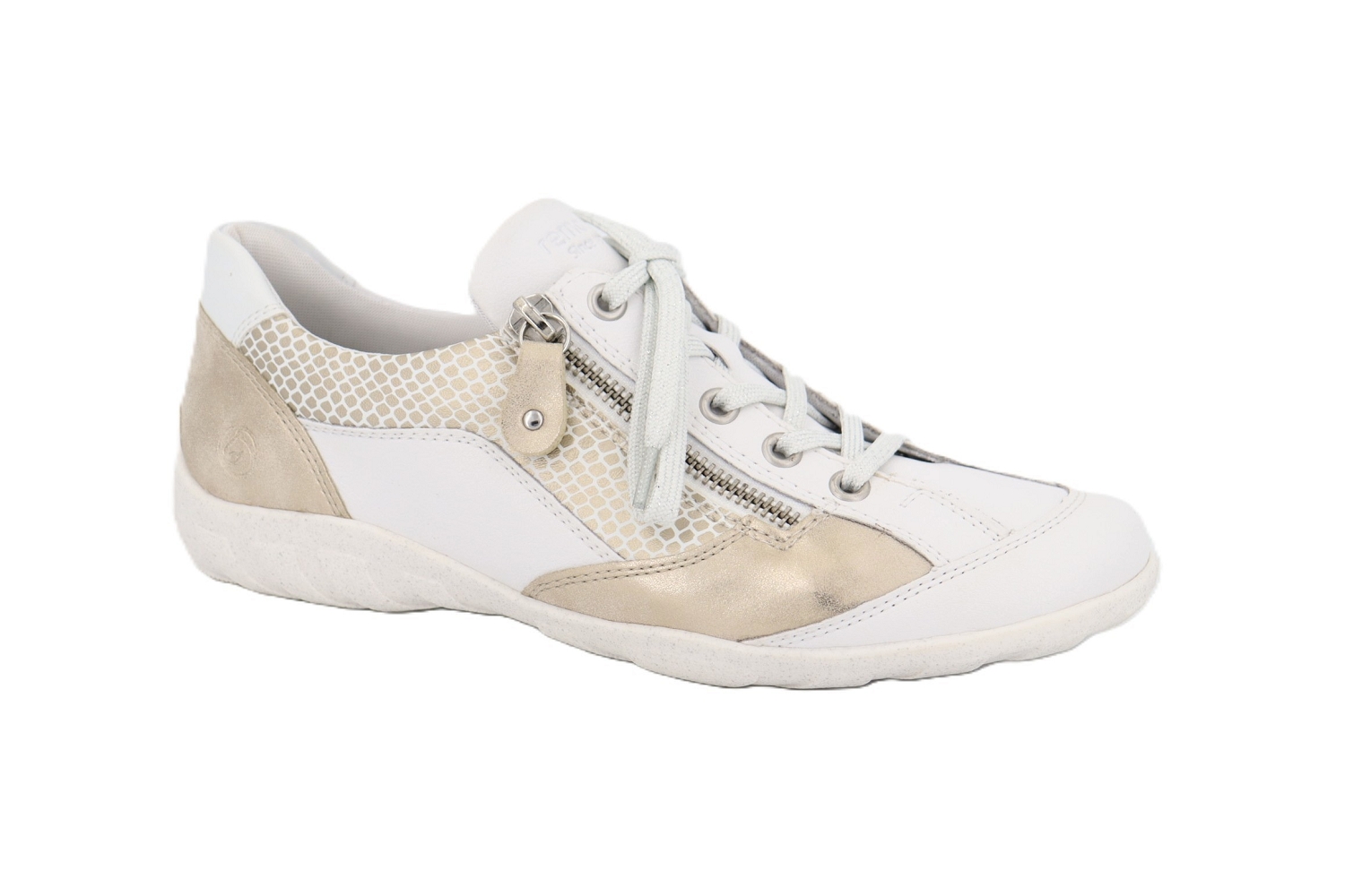 La basket Fanella de chez Remonte combine élégance discrète et confort au quotidien. Confectionnée en cuir blanc, elle se distingue par ses empiècements aux tons doux et son jeu de matières, apportant une touche moderne et féminine. Dotée d'une fermeture lacets associée à un zip latéral, elle s'enfile facilement tout en garantissant un excellent maintien. Sa semelle souple et son intérieur confortable en font une alliée idéale pour accompagner vos journées actives avec style.