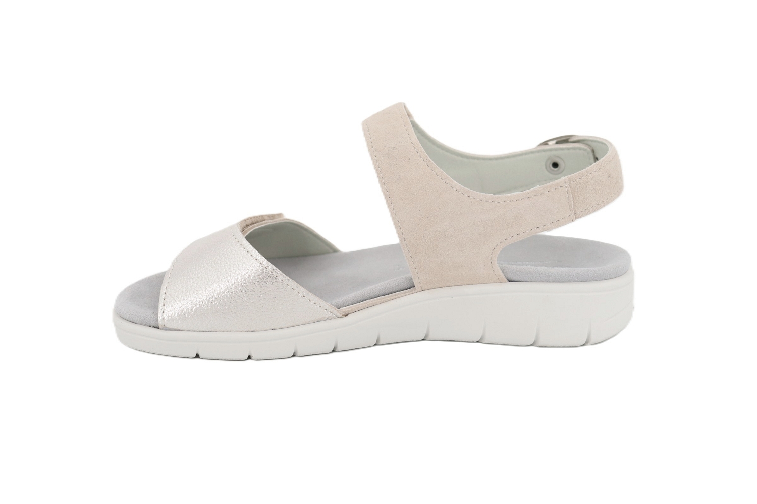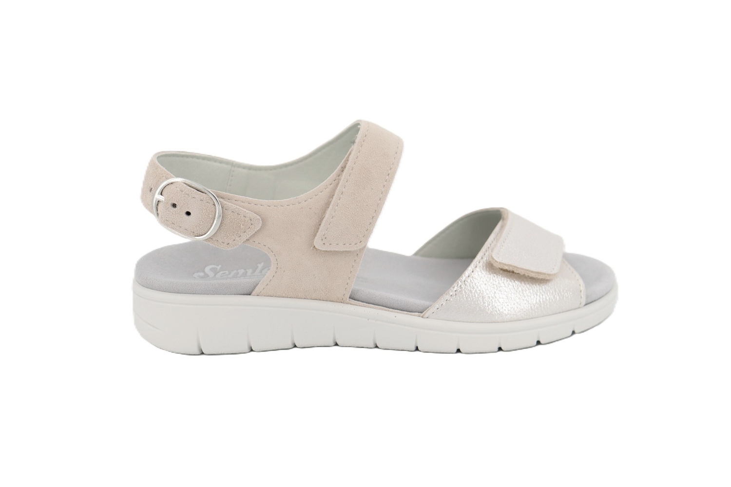 La sandale nu-pieds DUNJA de chez Semler séduit par son élégante combinaison de cuir suédé beige et de cuir irisé, apportant une touche lumineuse et raffinée aux looks estivaux. Sa silhouette épurée et féminine s'adapte facilement à une garde-robe du quotidien comme à des tenues plus habillées. Pensée pour le confort, elle est dotée de brides ajustables assurant un bon maintien du pied et d'une semelle souple qui accompagne naturellement la marche. Polyvalente et agréable à porter, la DUNJA est idéale pour profiter des journées d'été avec style et légèreté.