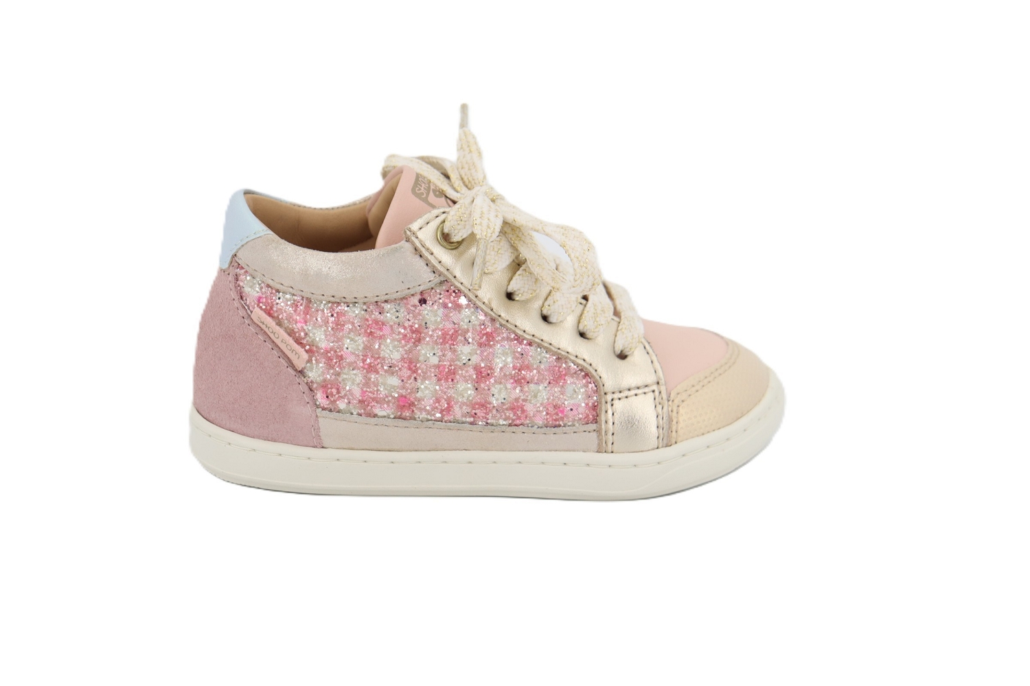 La basket Bouba Connect de Shoo Pom séduit par son style lumineux et plein de fantaisie. Confectionnée en cuir rose, elle est sublimée par des empiècements pailletés façon glitter qui apportent une touche brillante et tendance. Son laçage classique permet un bon ajustement du pied, tandis que la doublure en cuir assure confort et respirabilité tout au long de la journée. Montée sur une semelle souple et résistante, cette sneaker accompagne parfaitement les enfants dans leurs aventures quotidiennes avec style et confort.