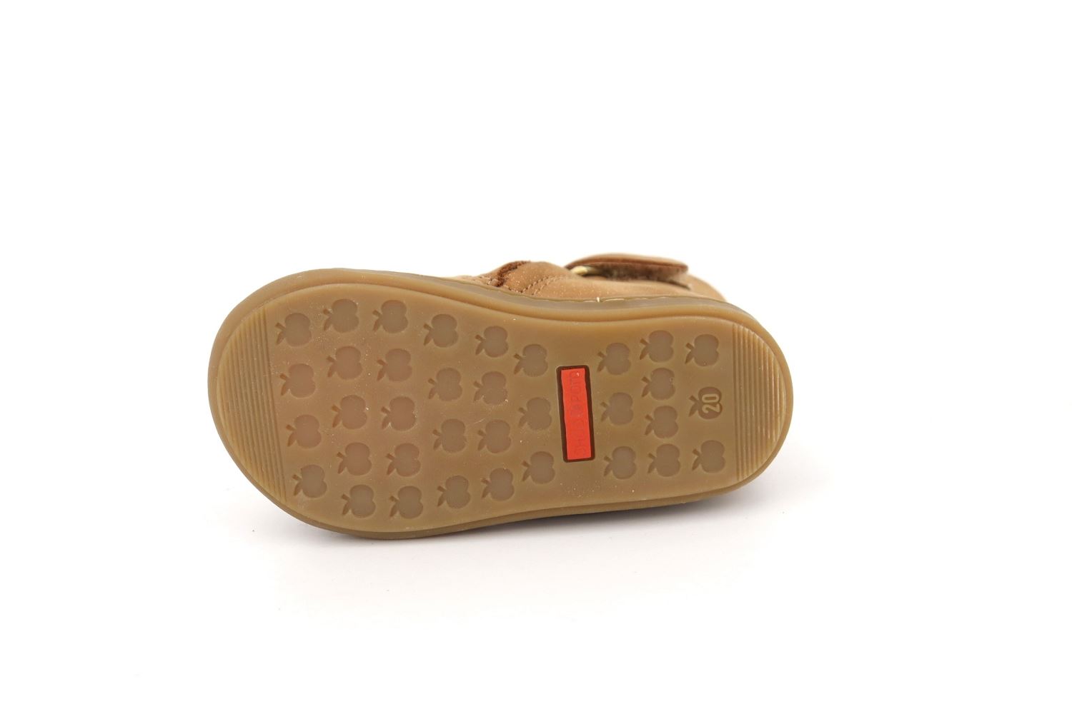 Cette bottine premiers-pas pour enfants est présentée dans une version en cuir camel gold, avec un empiècement en forme de pomme. Cette chaussure légère et souple est conçue avec des matériaux de qualité pour le bon développement du pied. Sa tige haute permet un bon maintien de la cheville et du pied. Elle se chausse et se déchausse facilement grâce à son zip intérieur.