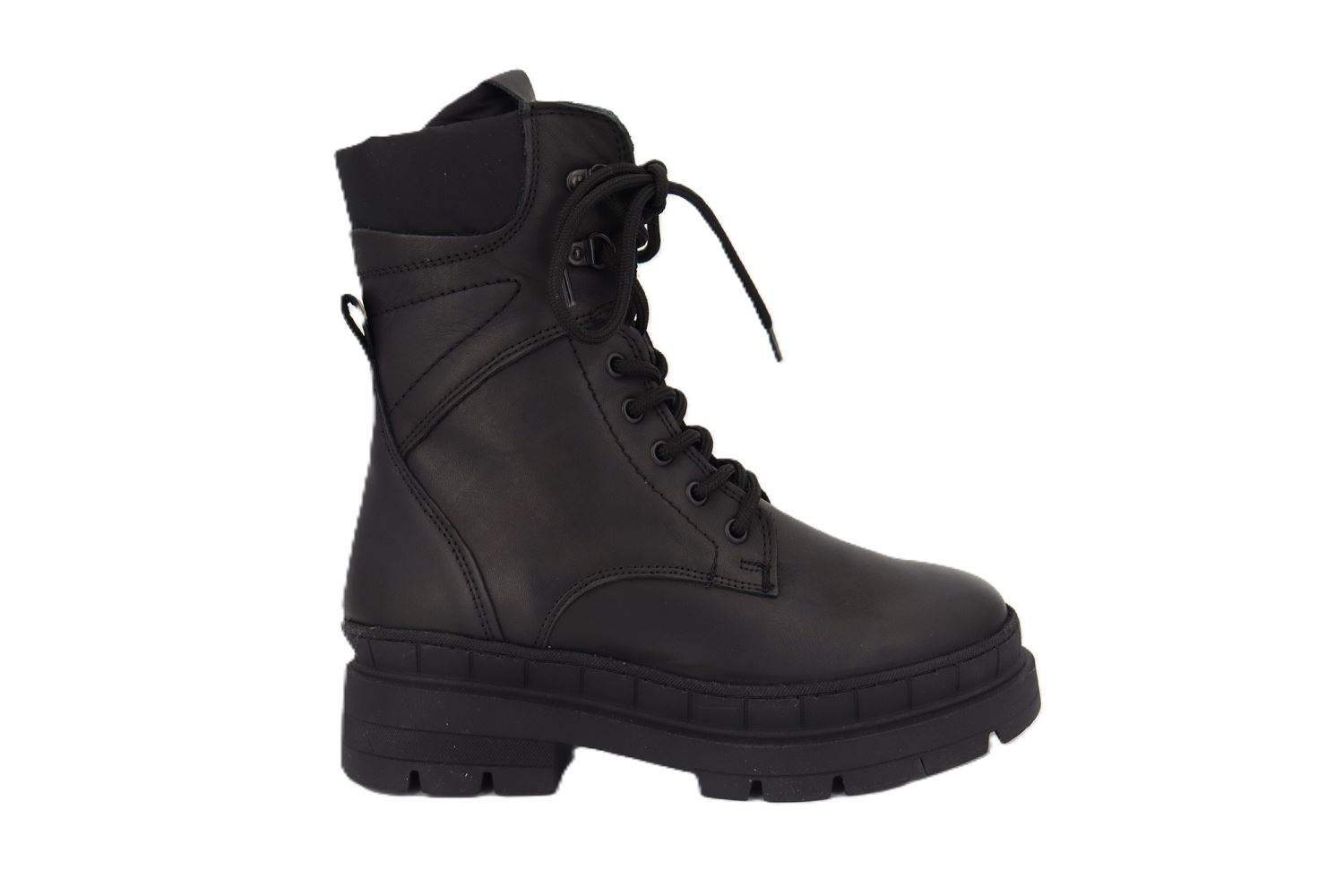 Adoptez un style urbain et affirmé avec cette bottine Tamaris en cuir noir. Son design montante à lacets, associé à un zip latéral discret, assure une mise en place facile sans compromis sur le maintien. Le col matelassé apporte un confort supplémentaire autour de la cheville, tandis que la semelle crantée épaisse garantit stabilité et allure contemporaine. Parfaite pour accompagner un jean, un pantalon cargo ou une robe, cette bottine allie style, robustesse et confort au quotidien.