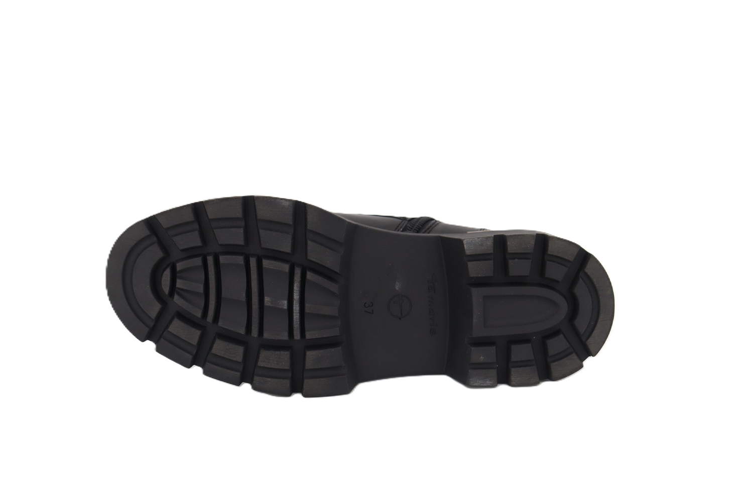 Affirmez votre style avec cette bottine Tamaris en cuir noir, alliant allure intemporelle et confort moderne. Son laçage montant lui apporte une touche authentique et ajustable, tandis que la fermeture zippée latérale garantit une chaussure facile à enfiler au quotidien. La semelle crantée à plateforme, rehaussée d’un liseré contrasté, offre un look tendance tout en assurant une excellente adhérence. Un modèle idéal pour accompagner aussi bien vos tenues casual que vos looks urbains, avec caractère et élégance.